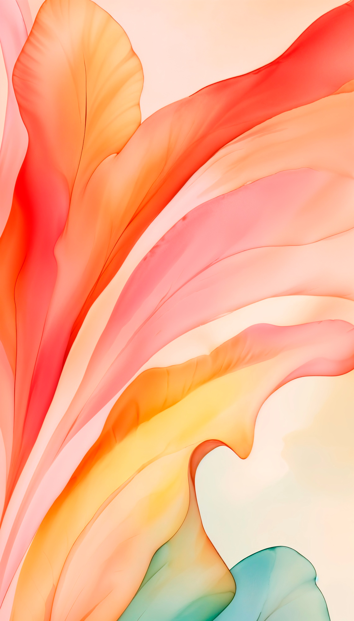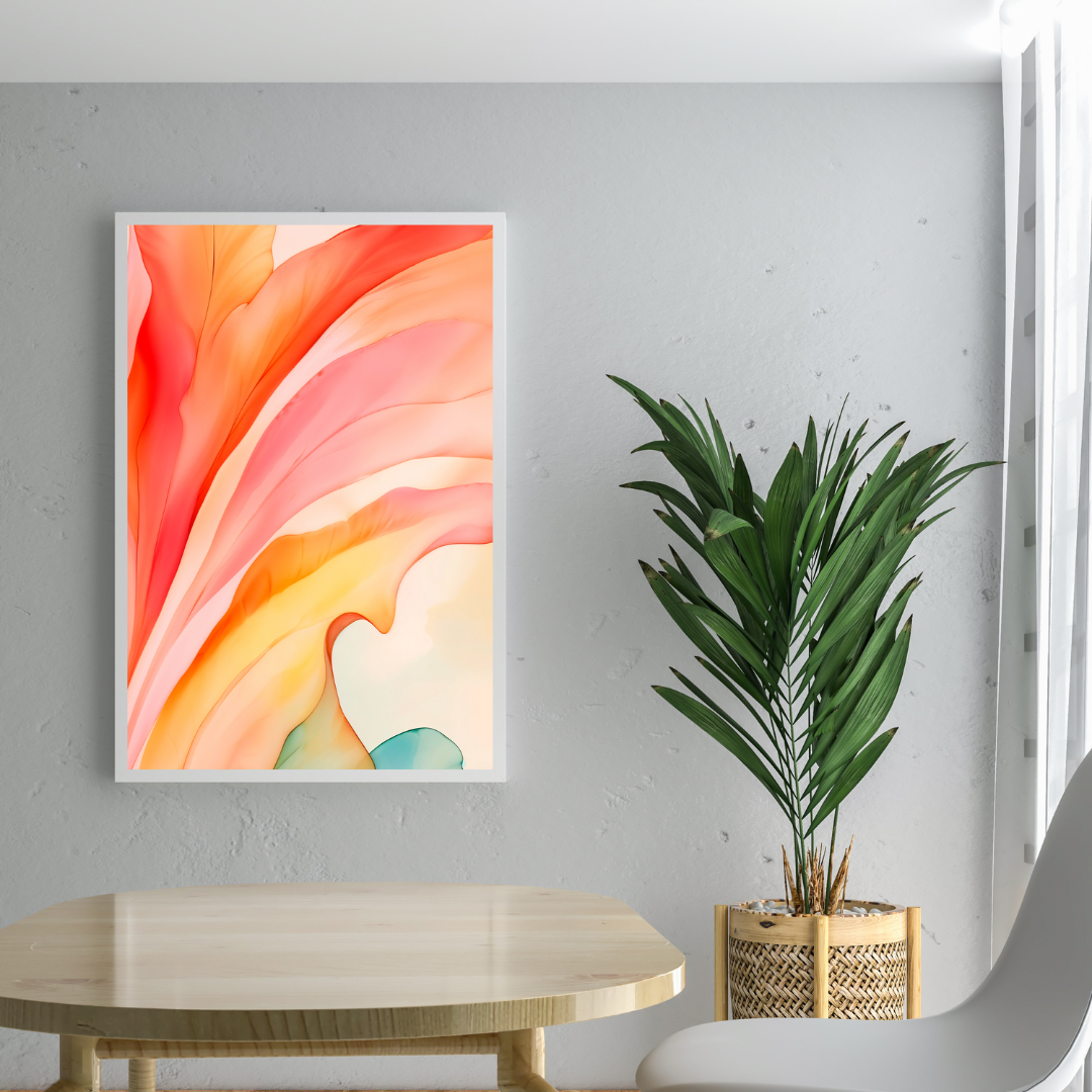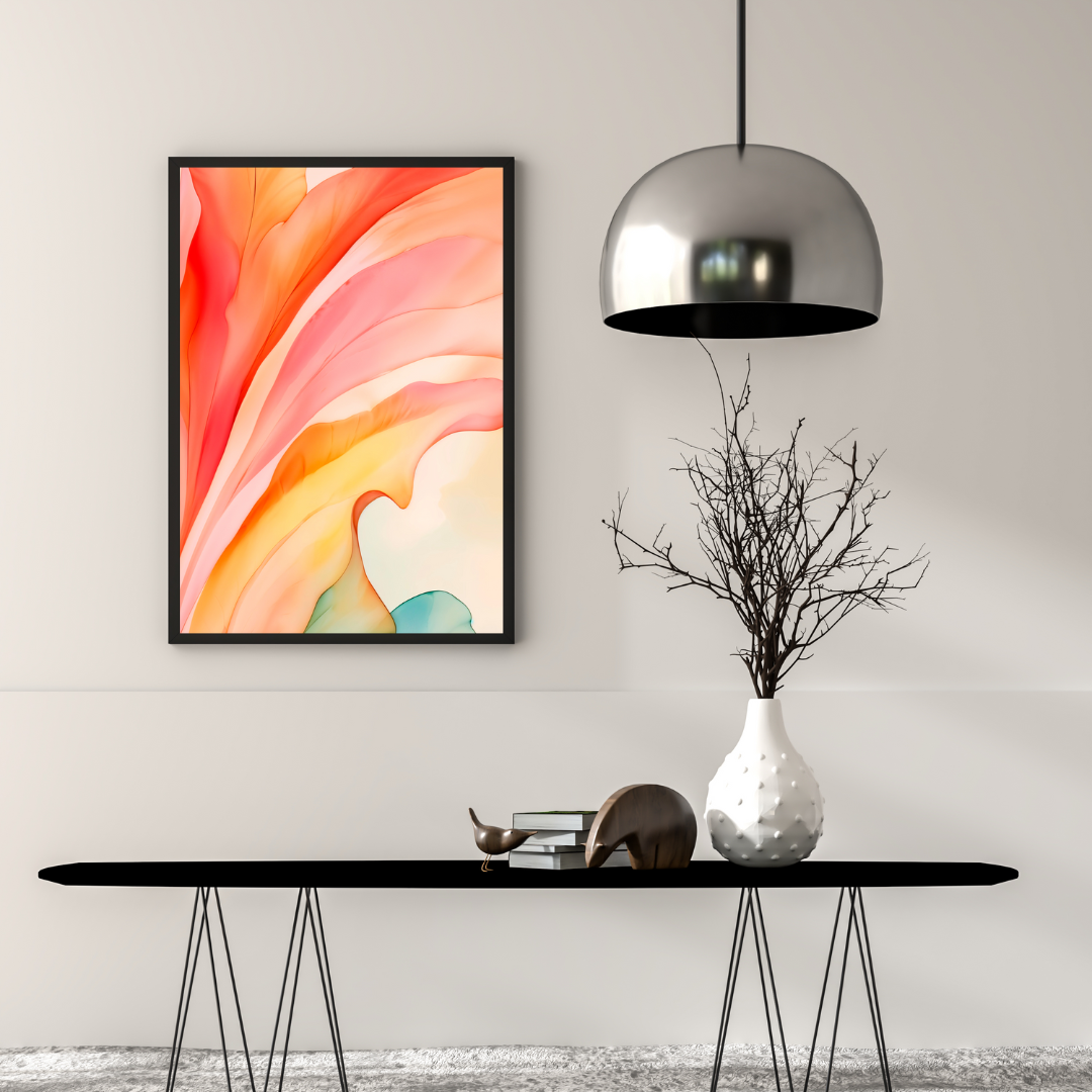 Luxury Abstract Ink Art with Peach, Coral and Mint Flow