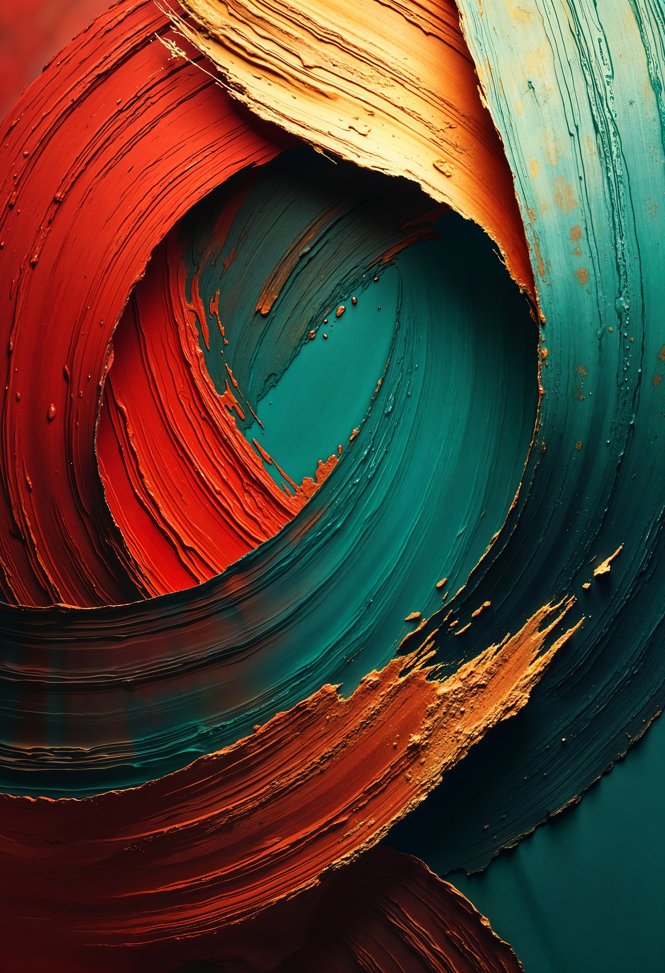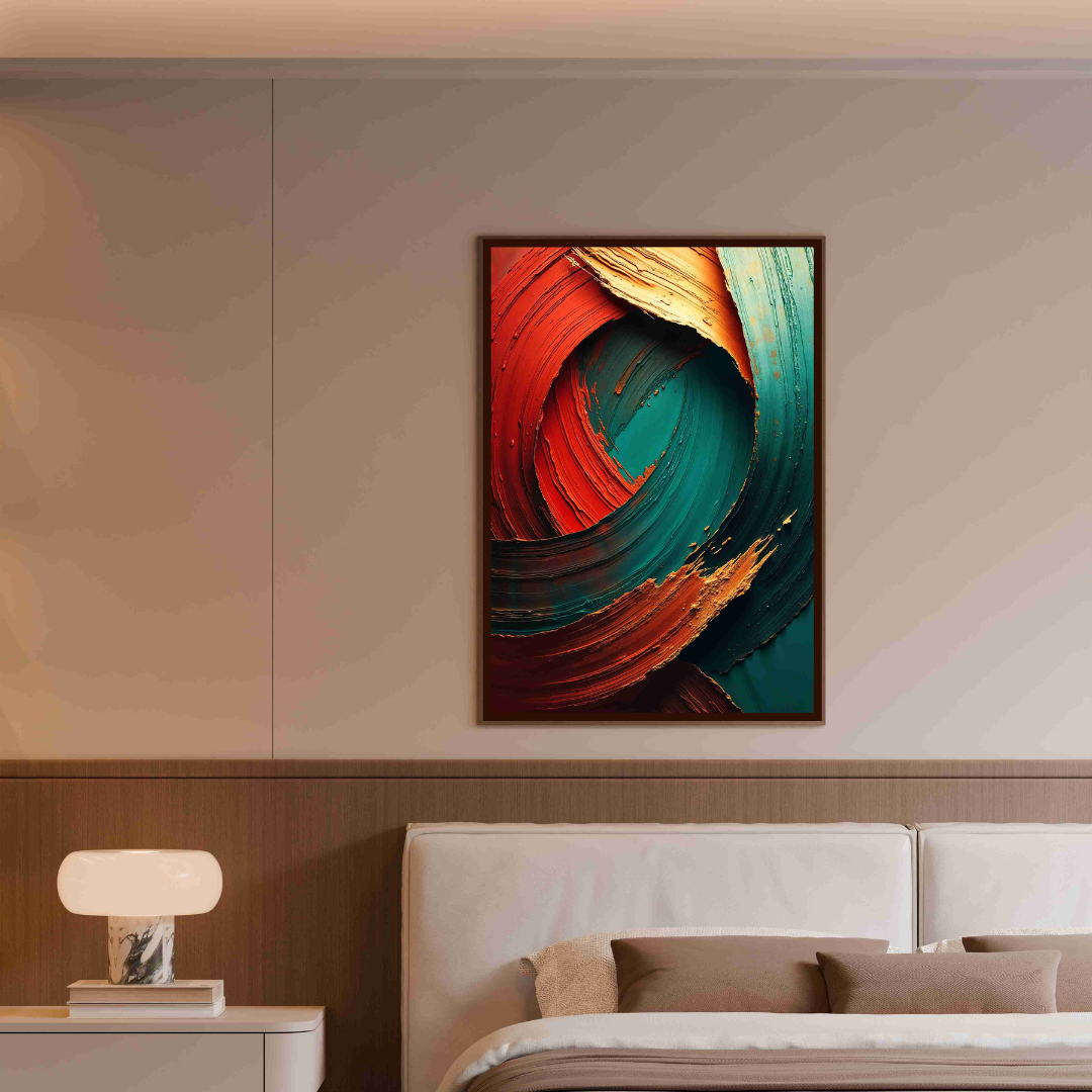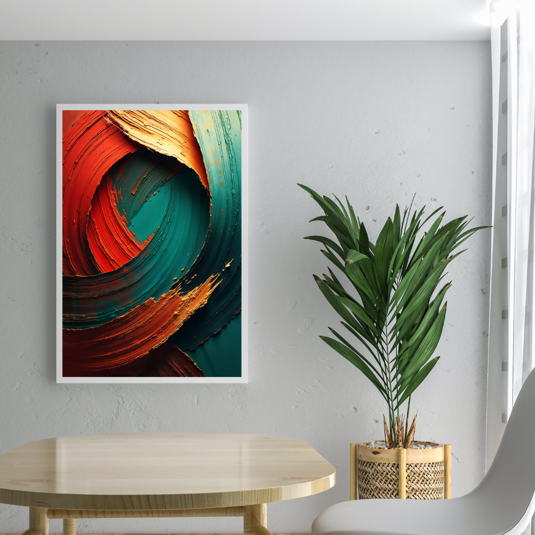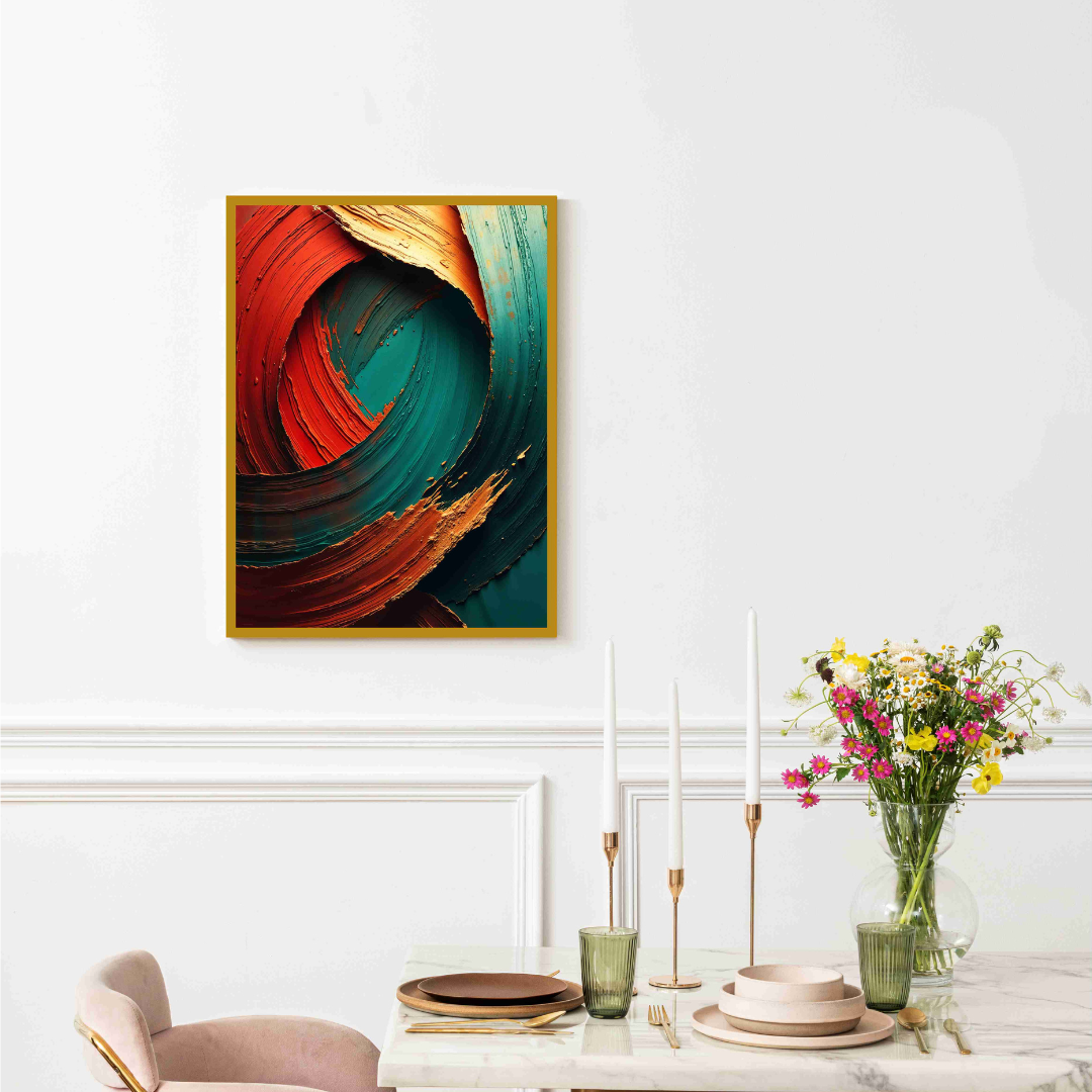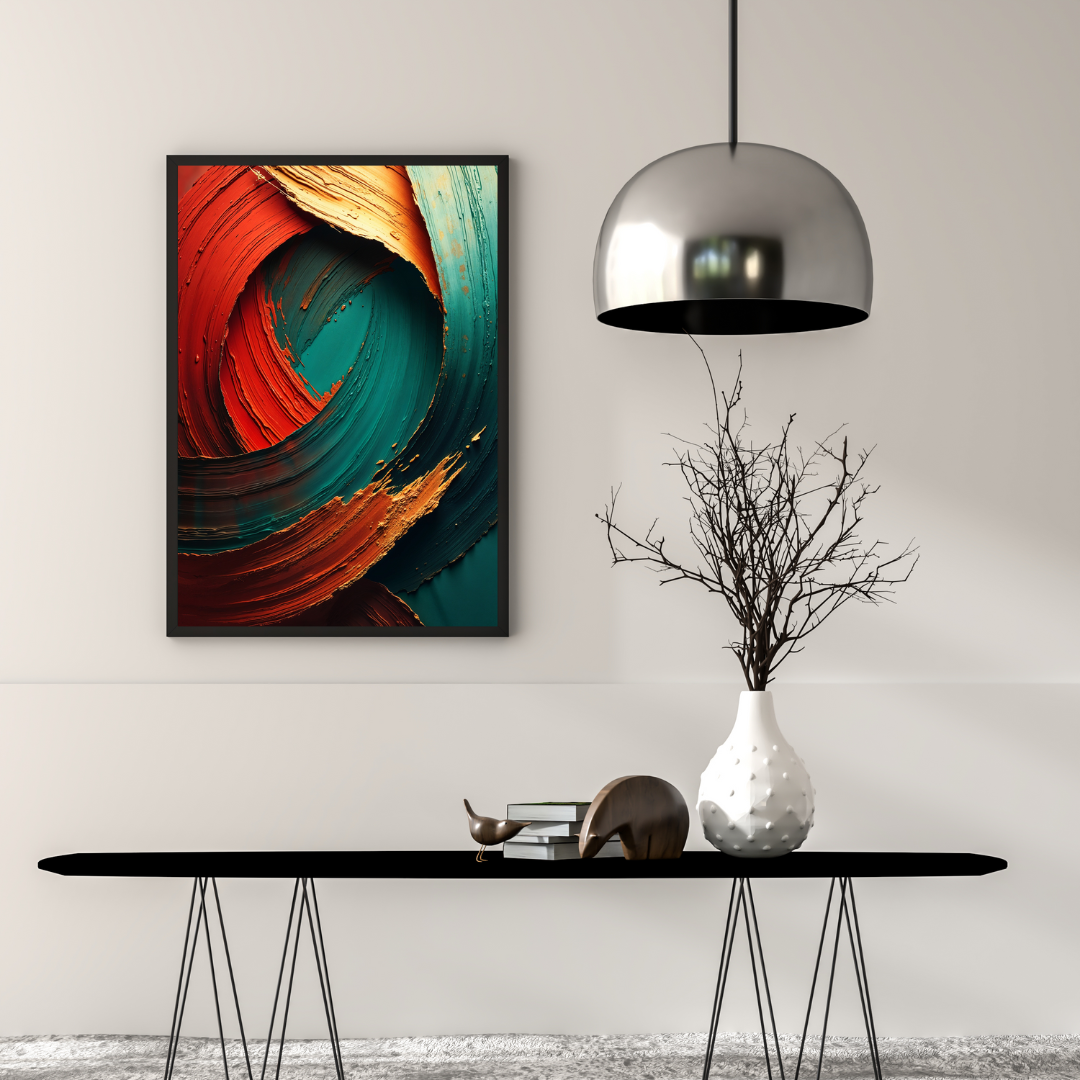 Luxury Abstract Textured Art in Teal, Red and Gold