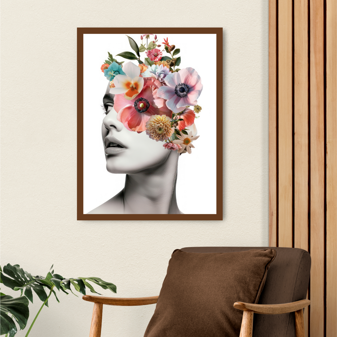 Luxury Floral Face Art in Soft Pastel and Coral Tones