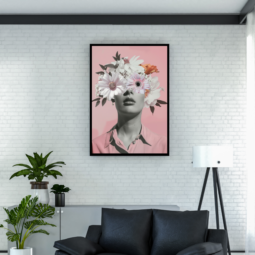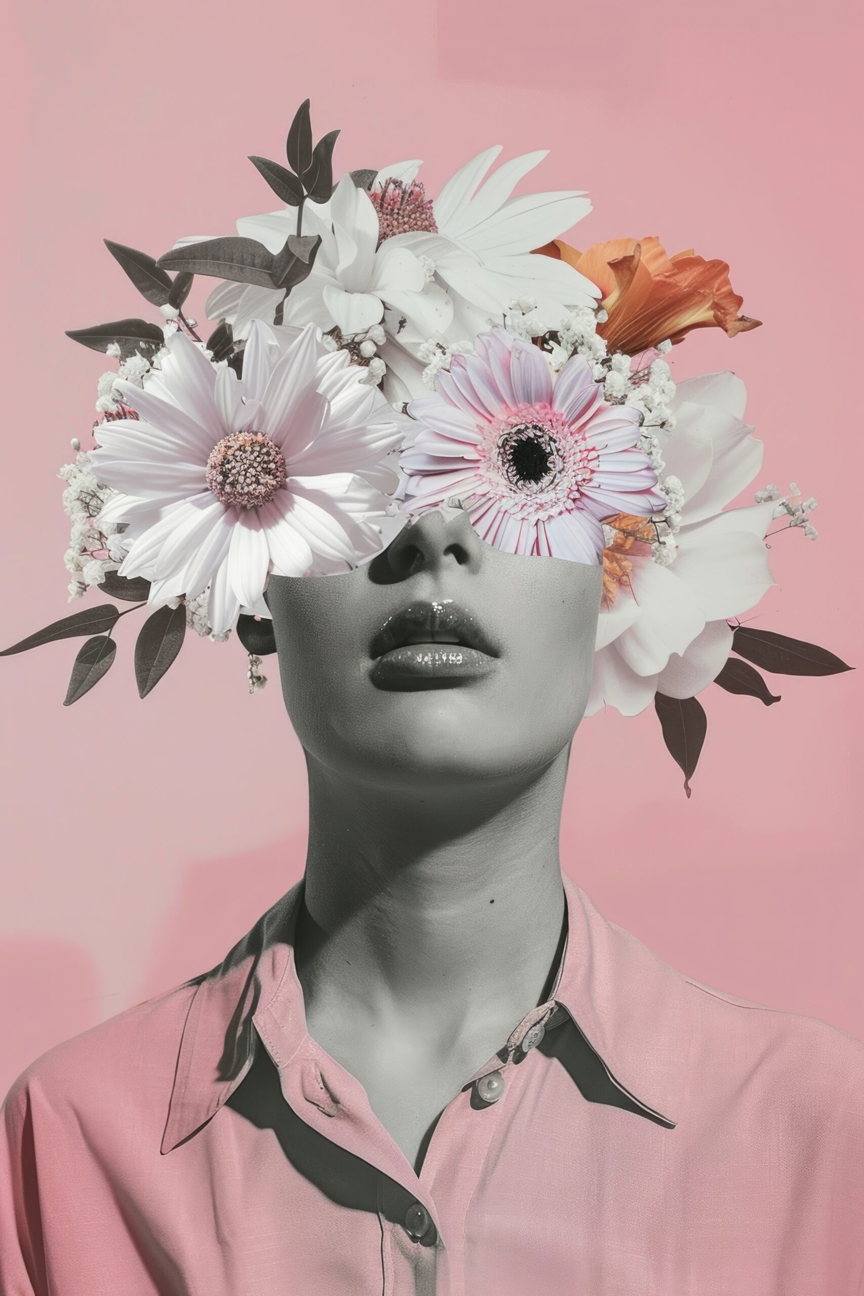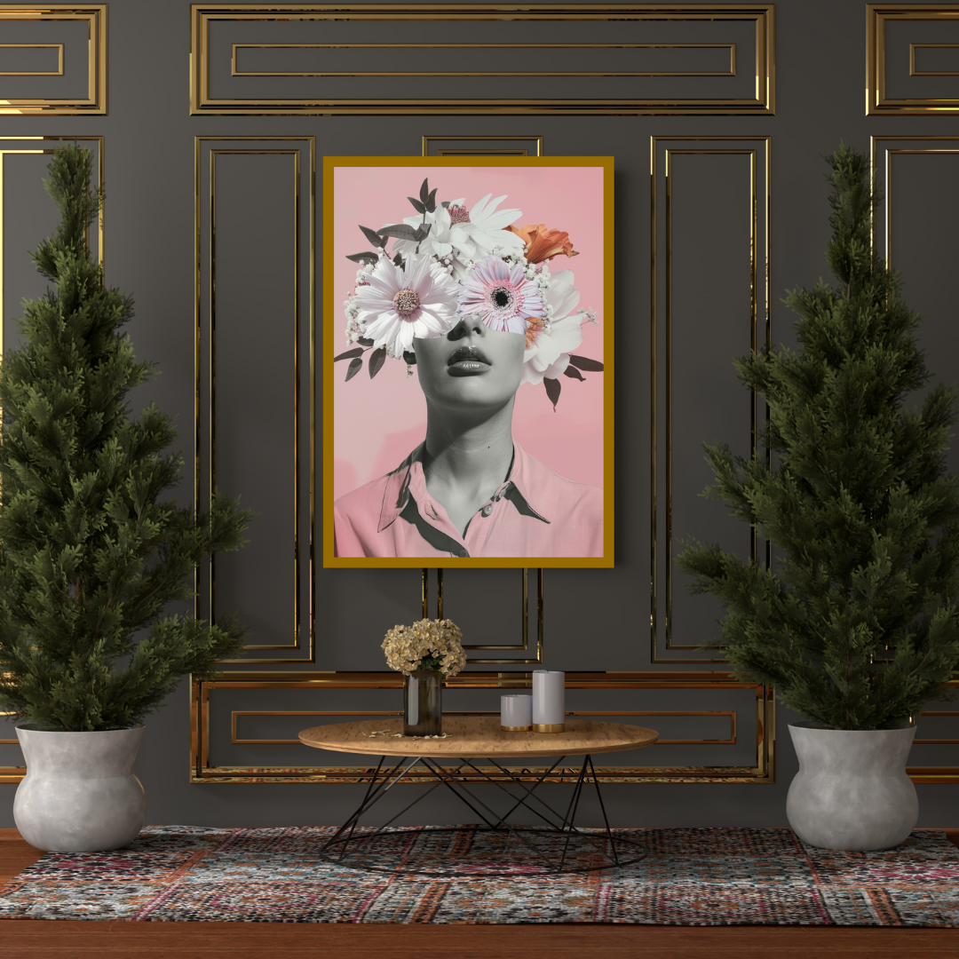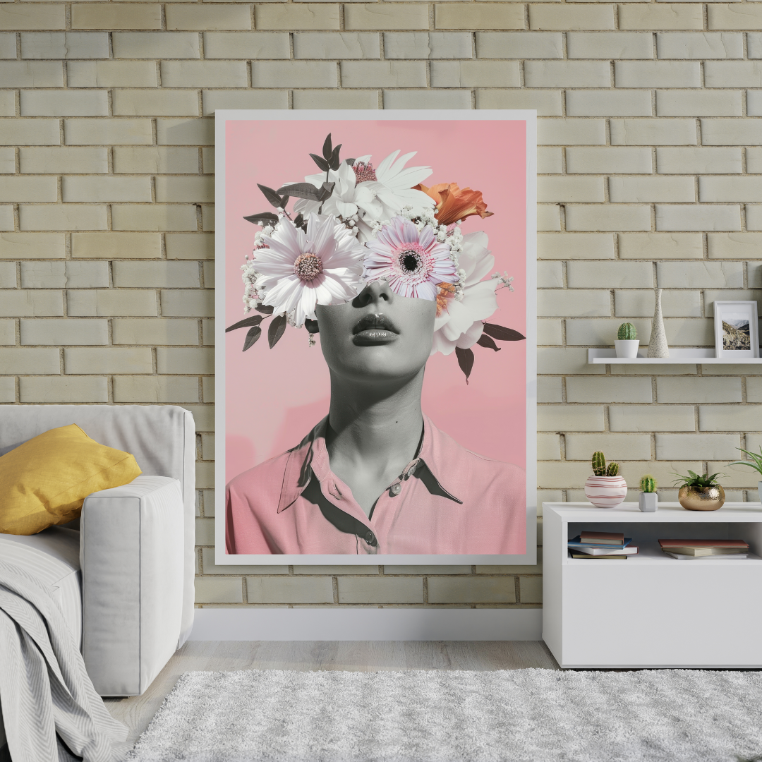 Surreal Floral Portrait Art with Dreamy Blossom Crown
