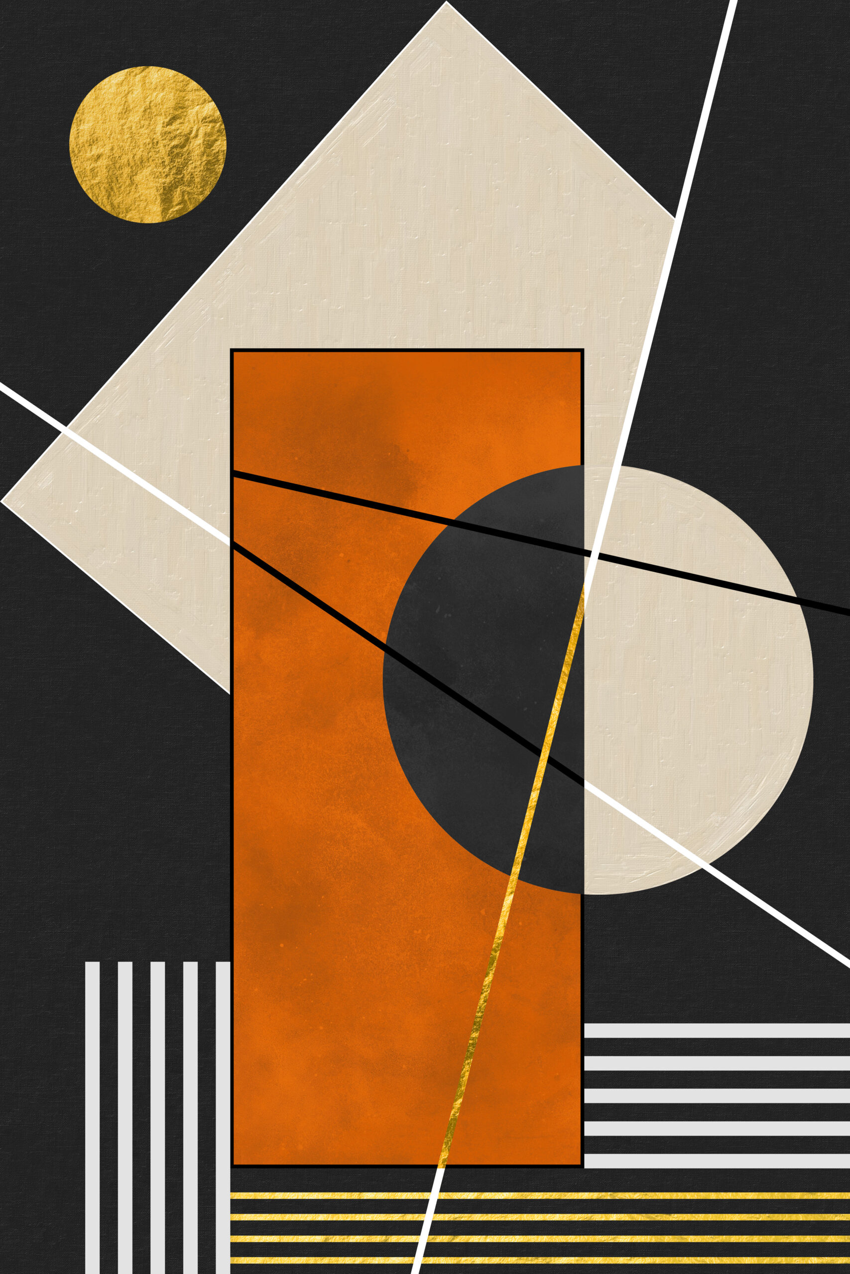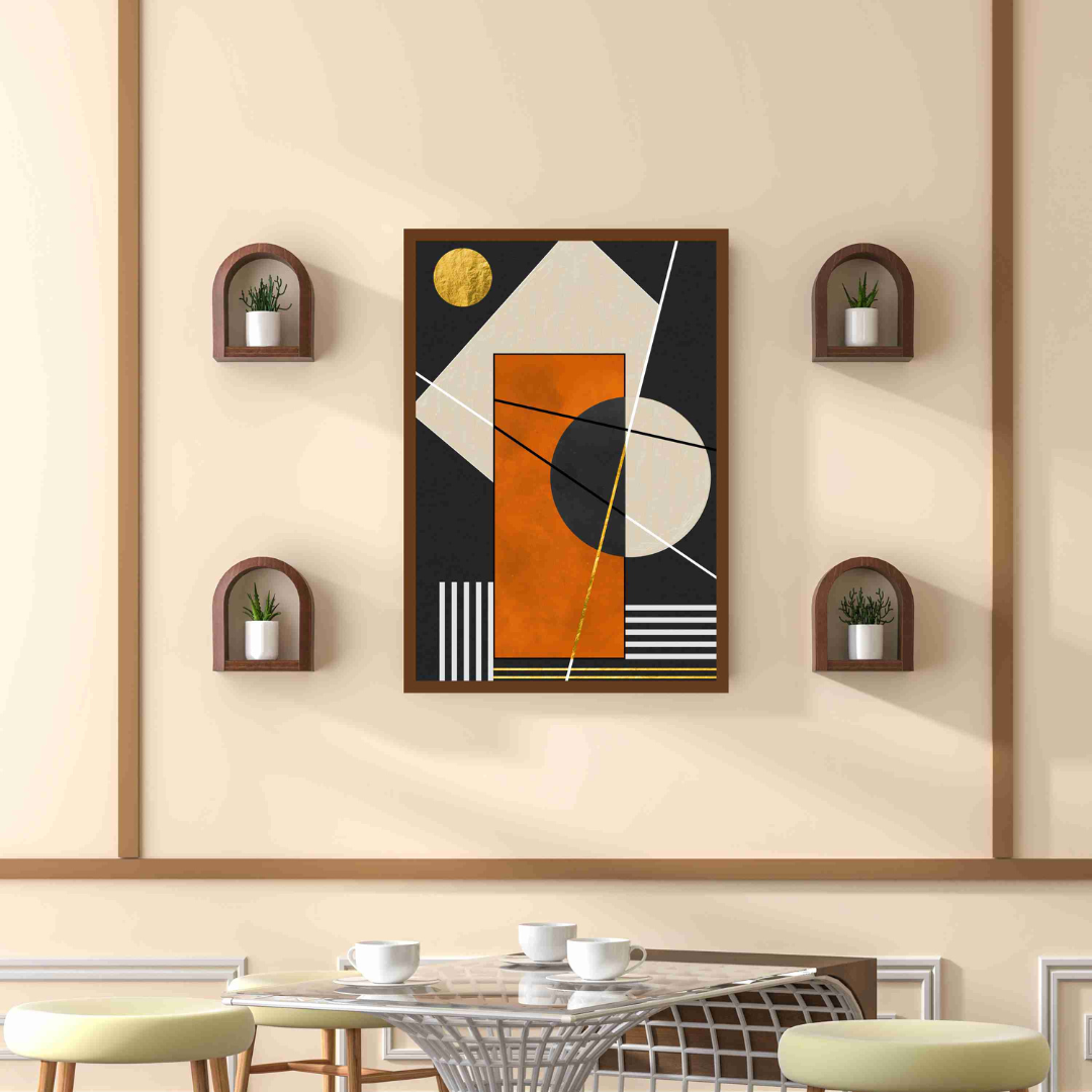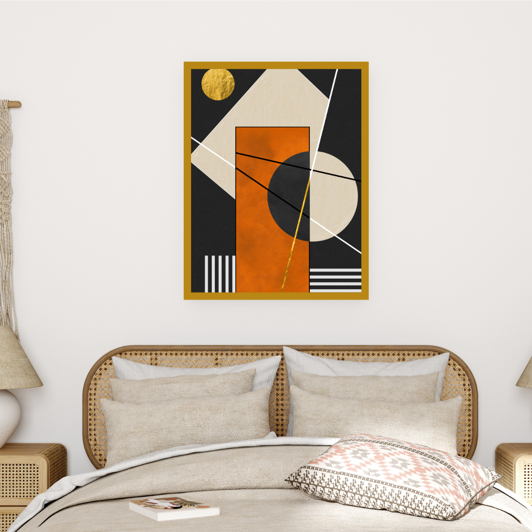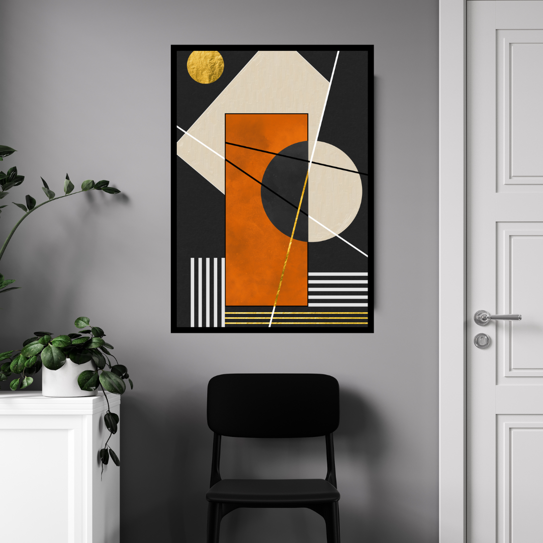 Modern Geometric Wall Art – Black Gold Orange Industrial Abstract Design