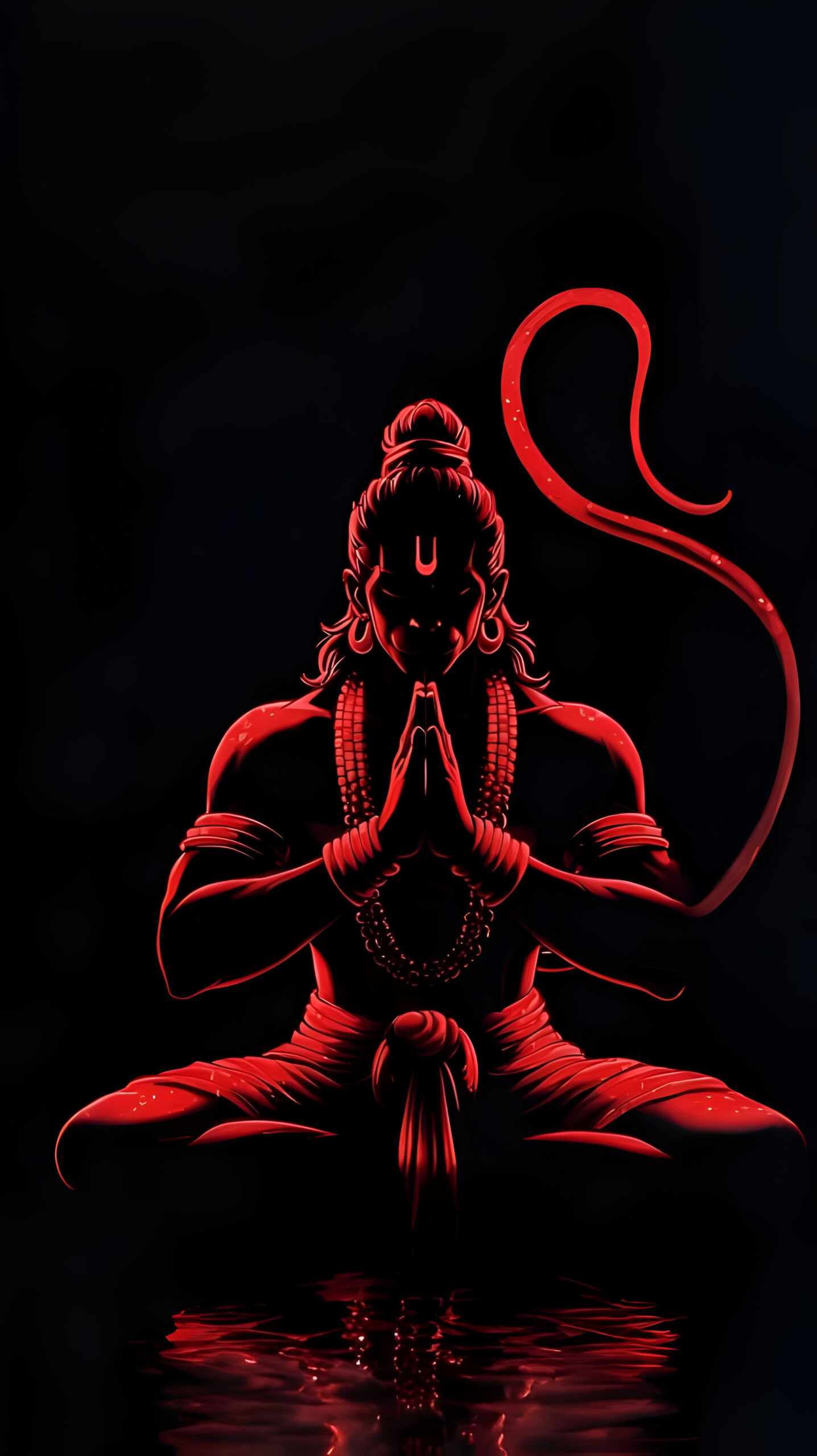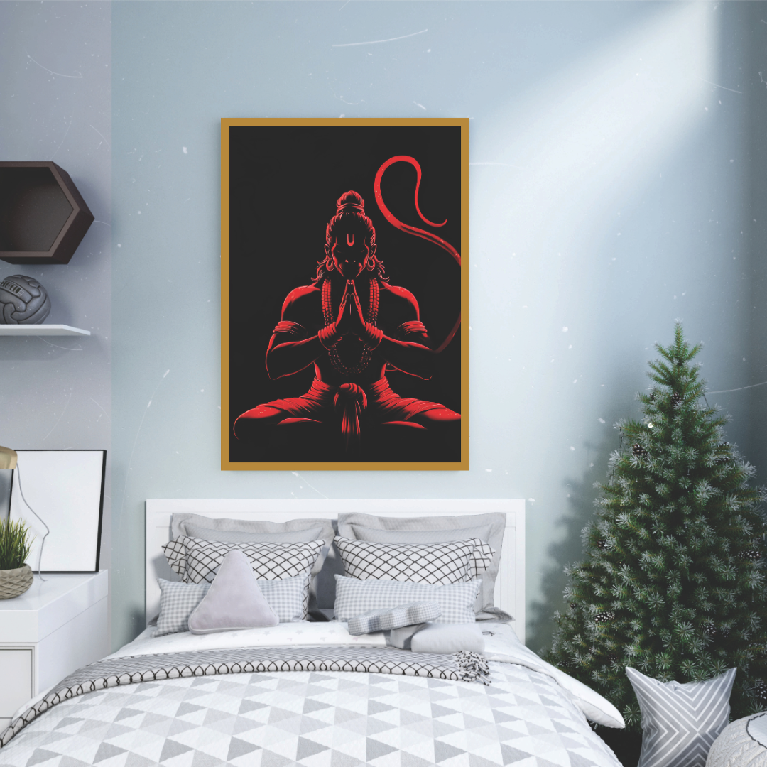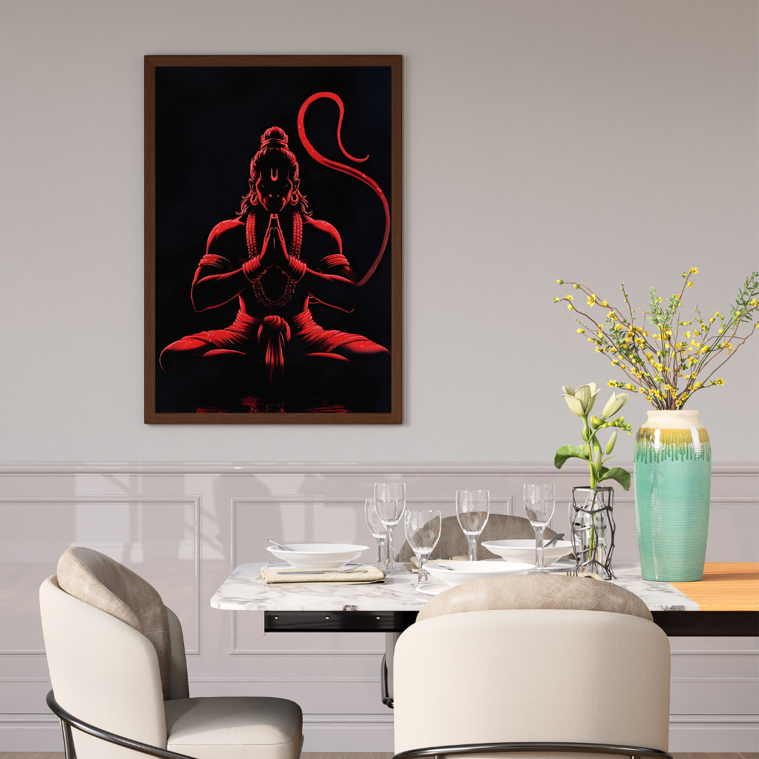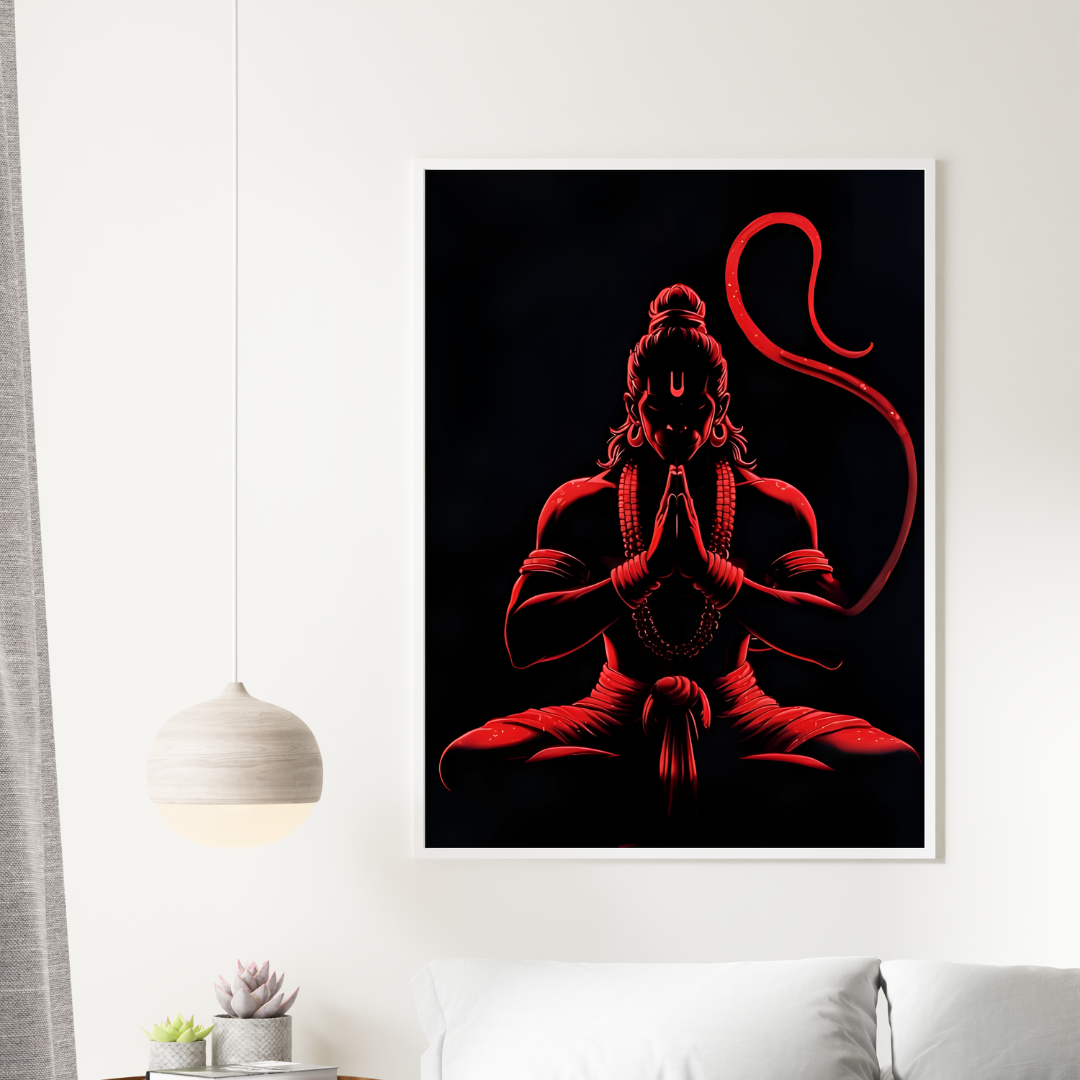 Calm & Powerful Hanuman Ji Digital Art Red Glow Meditation Wall Frame