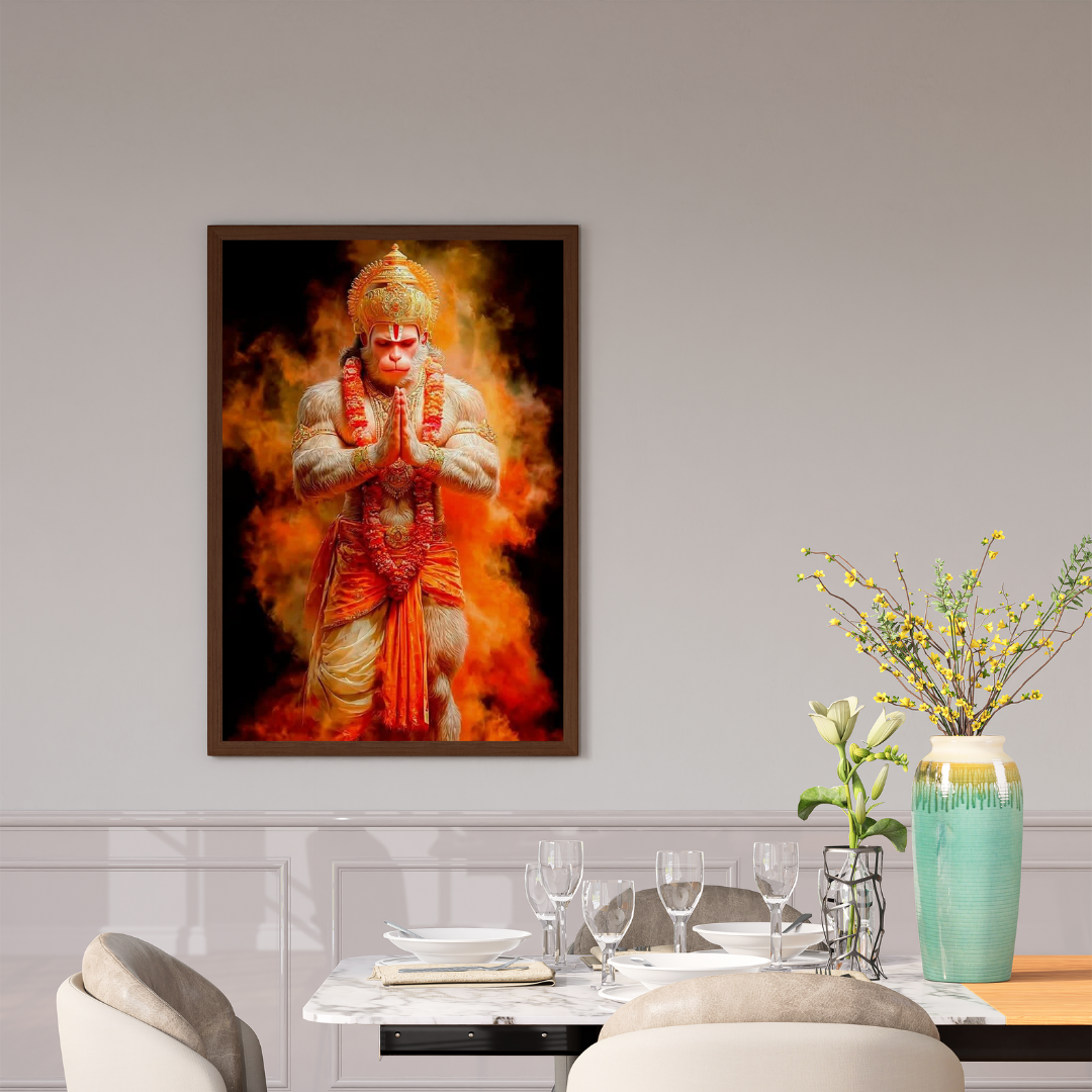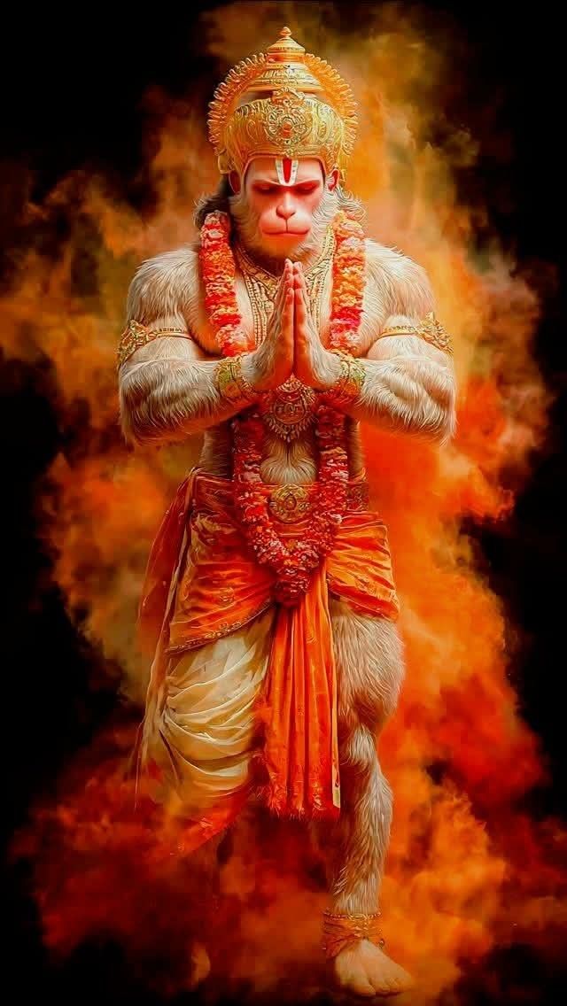 Lord Hanuman Digital Art. Powerful Divine Hanuman Ji in Orange Aura