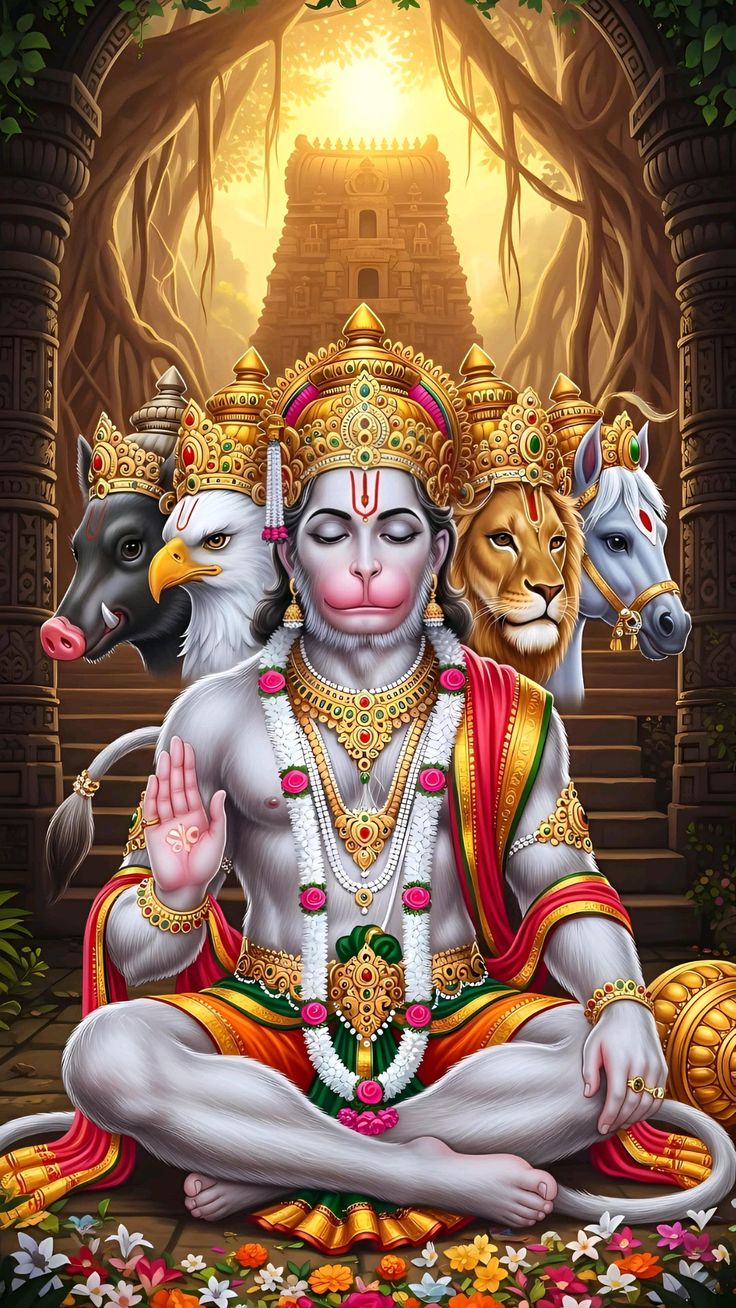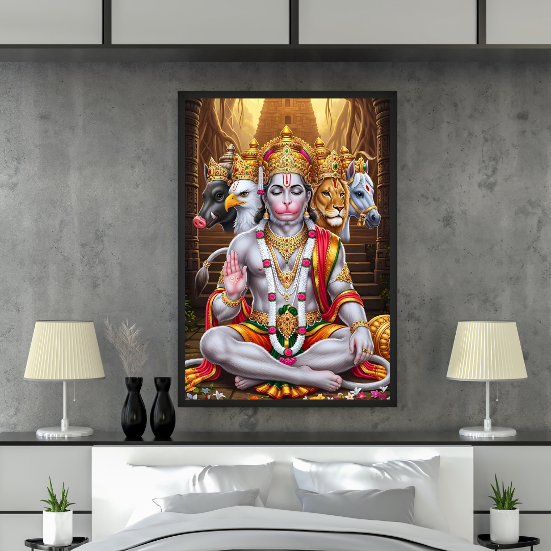 Panchmukhi Hanuman Ji Divine Artwork. Powerful Spiritual Hindu God Illustration