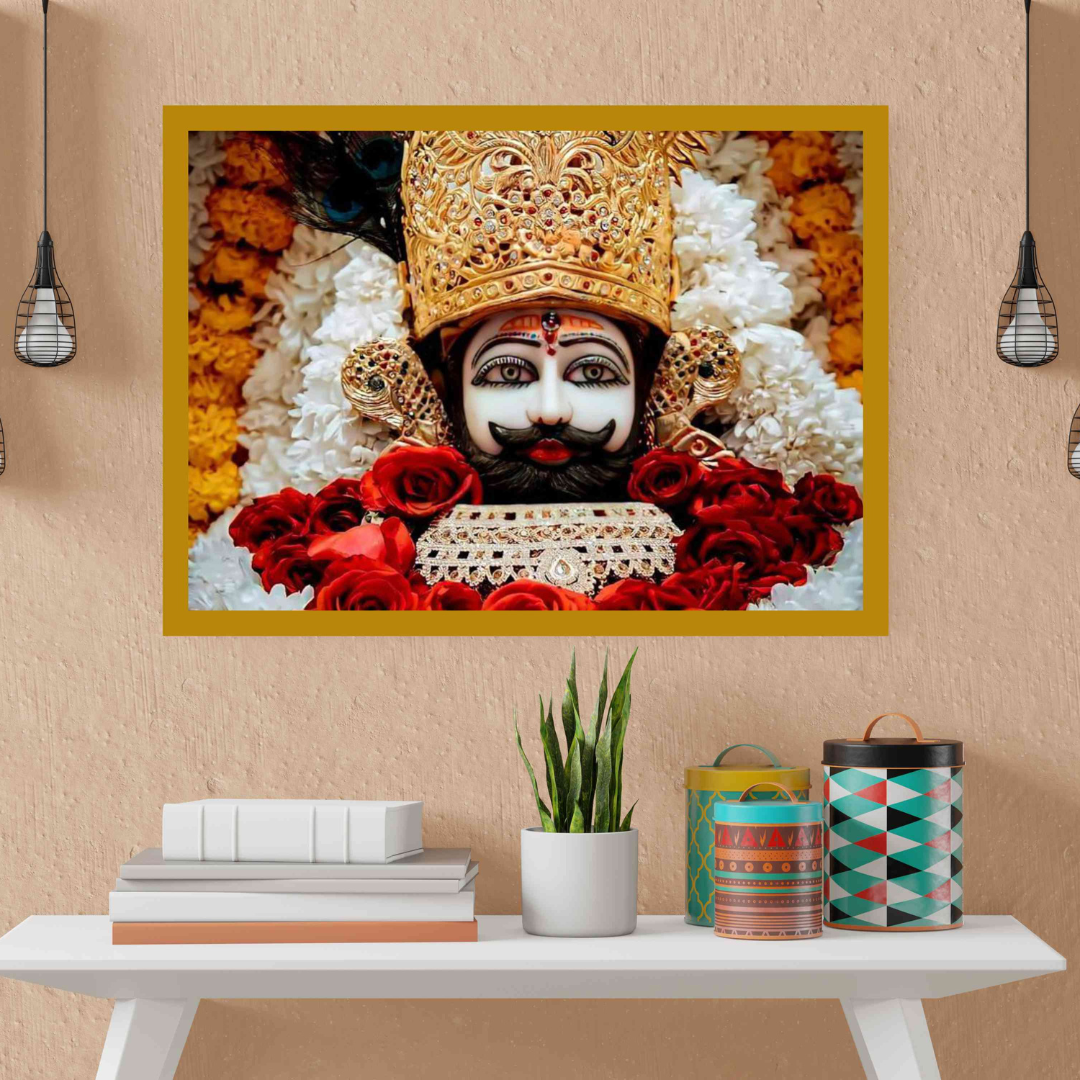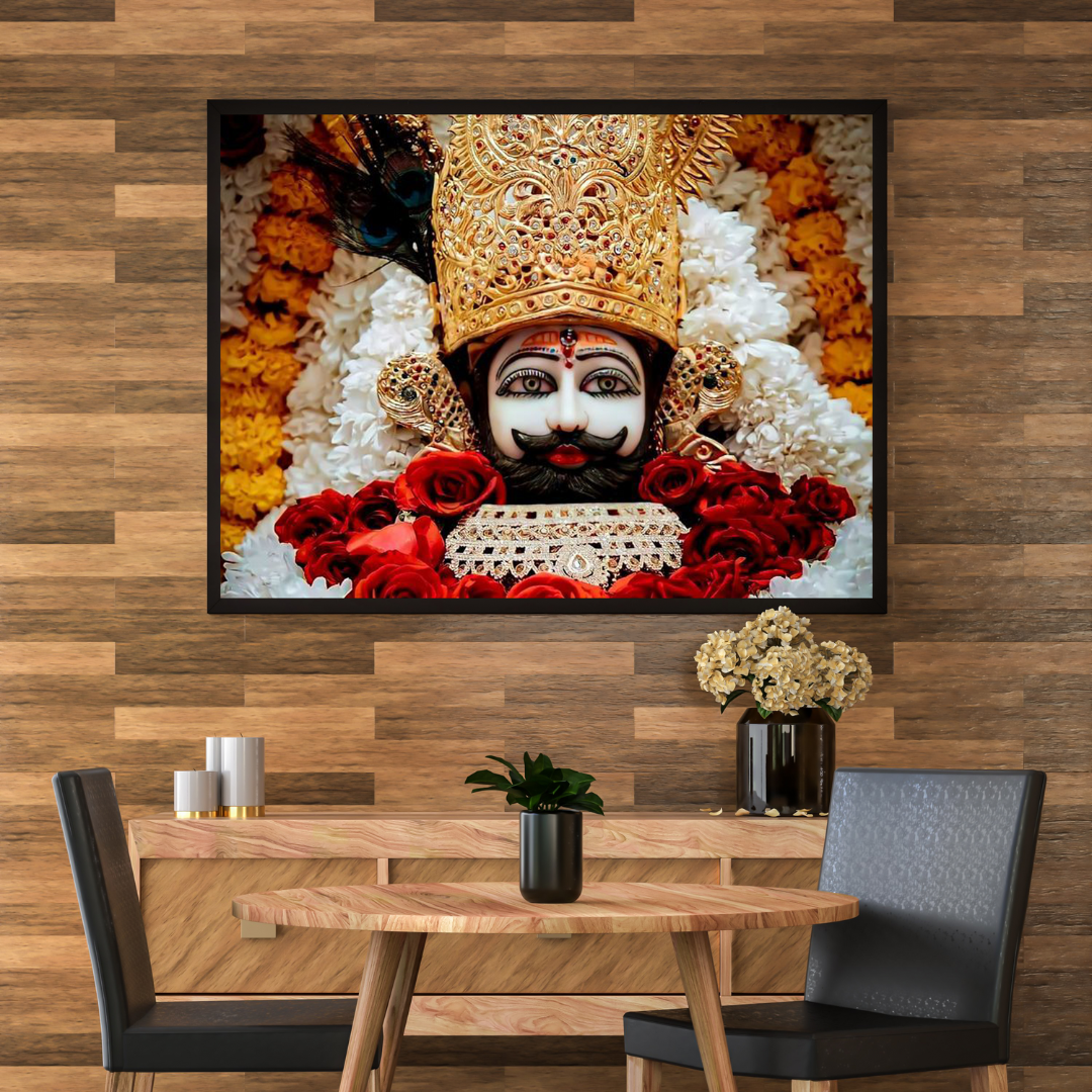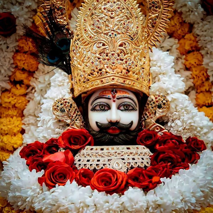 Khatu Shyam Ji Divine Murti with Golden Mukut and Flowers
