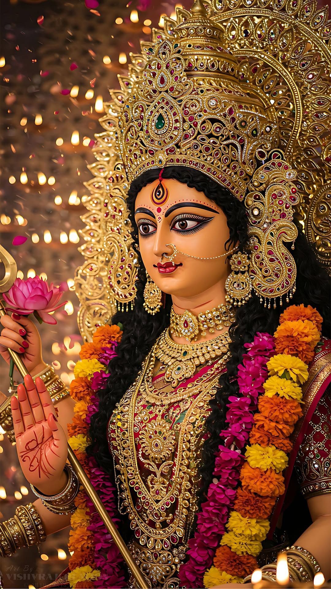 Beautiful Durga Maa Murti Art.Vibrant Hindu Goddess Illustration