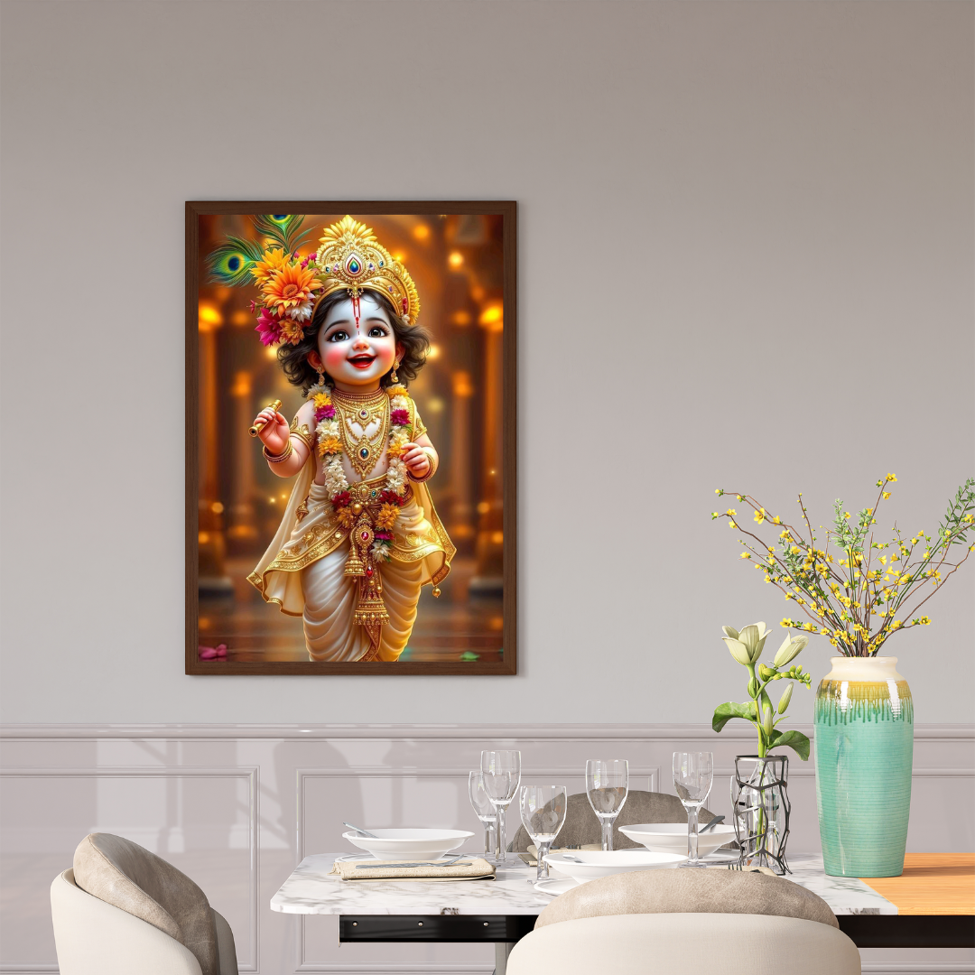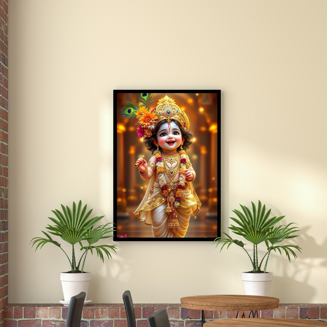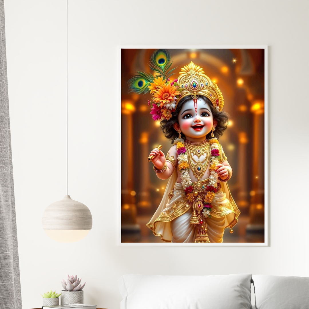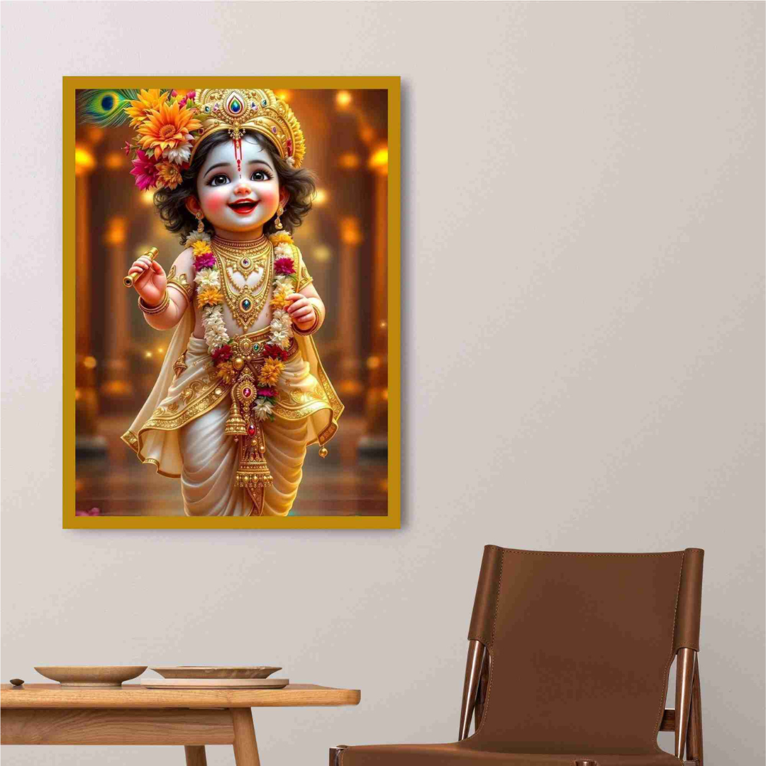 Cute Bal Krishna Artwork – Divine Baby Krishna in Golden Traditional Attire
