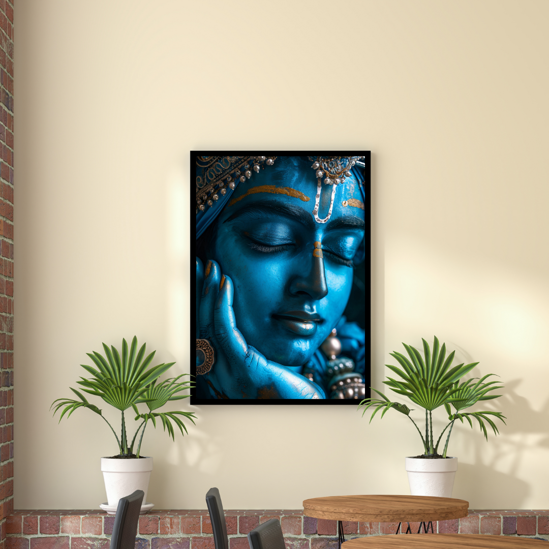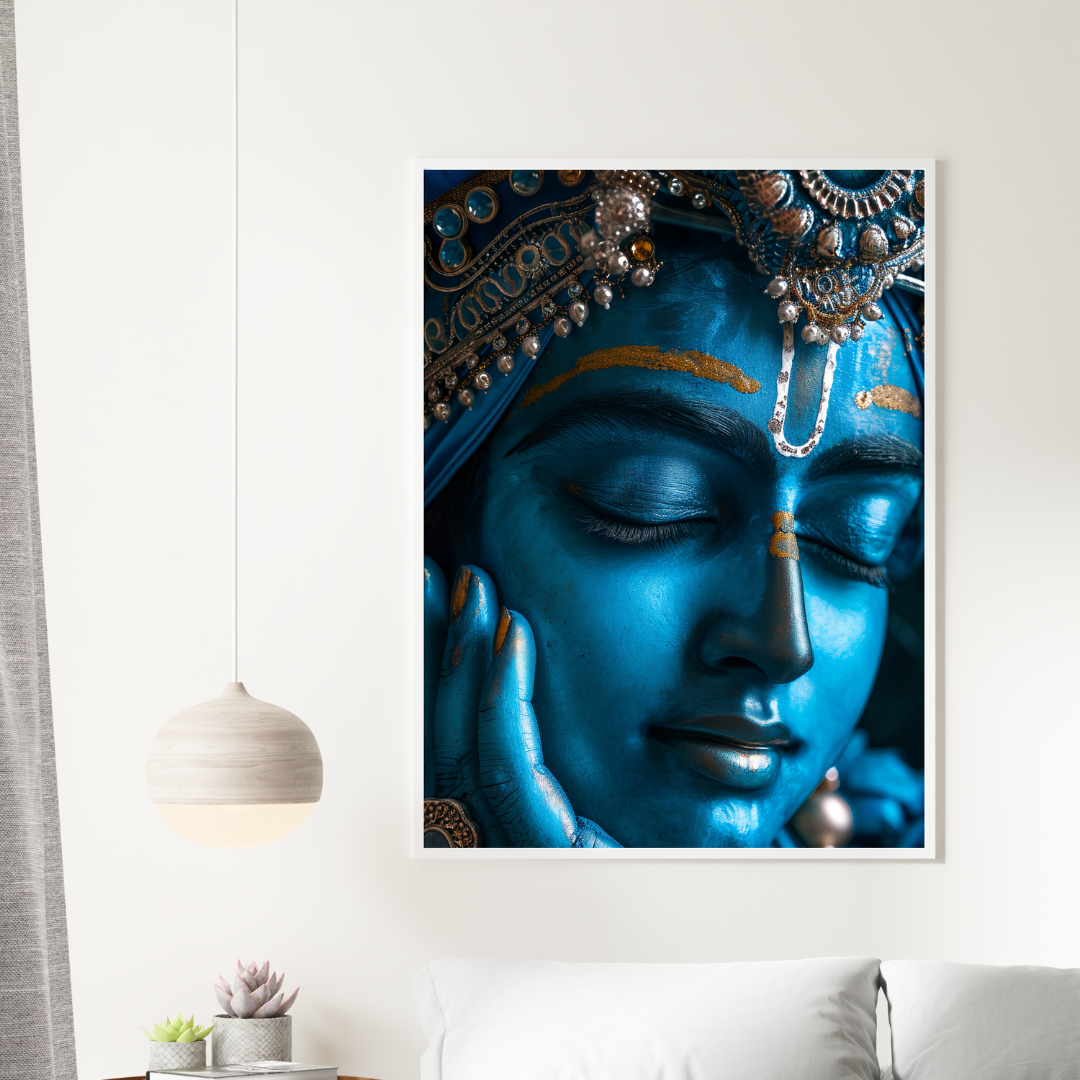 Blue Krishna Divine Close-Up Spiritual Artwork