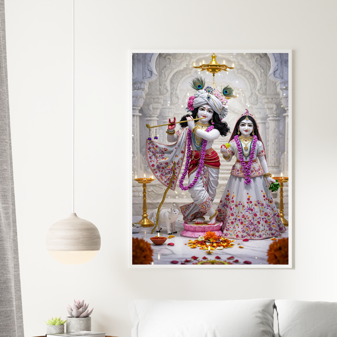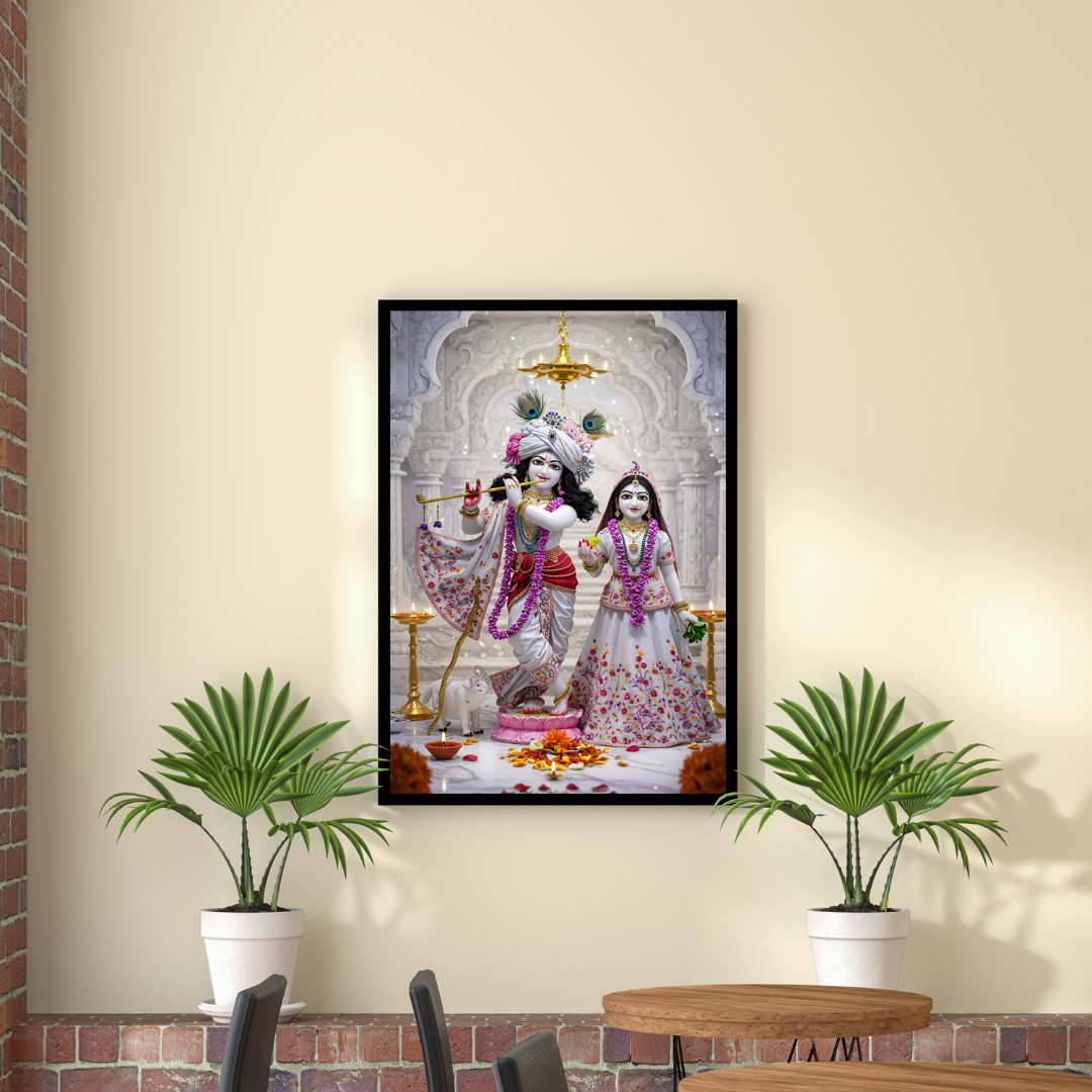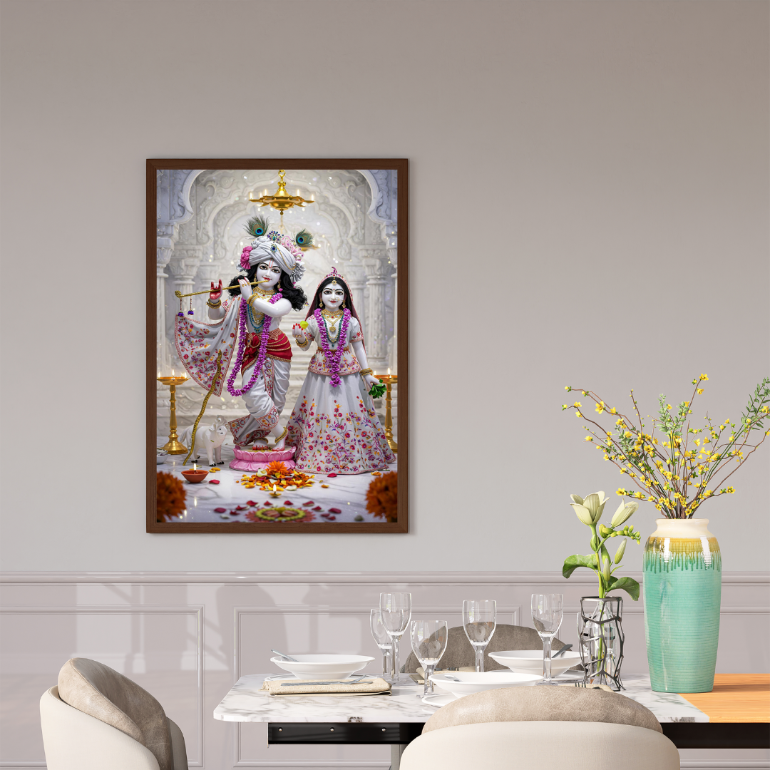 Radha Krishna Standing Flute Art Frame for Home Temple