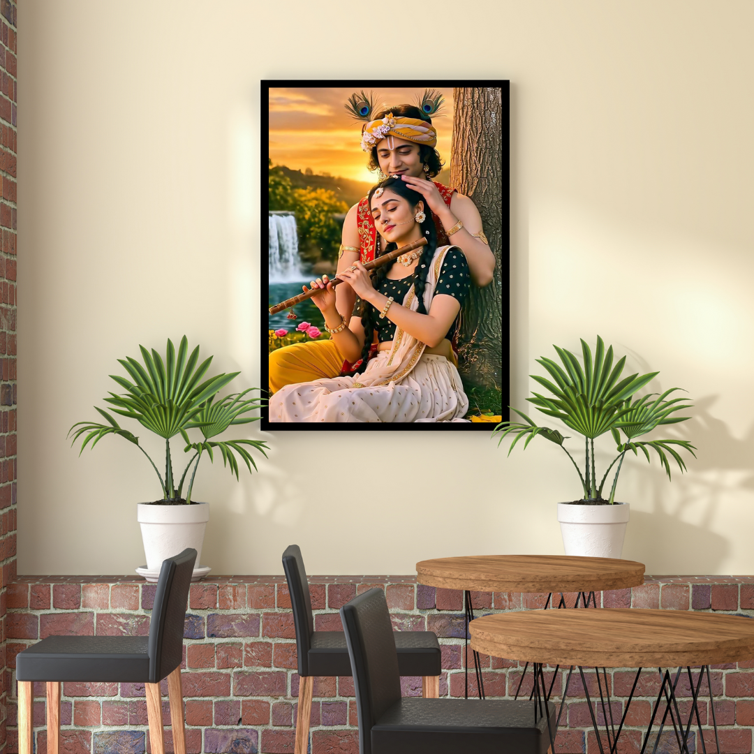 Radha Krishna Standing Flute Art Frame for Home Temple