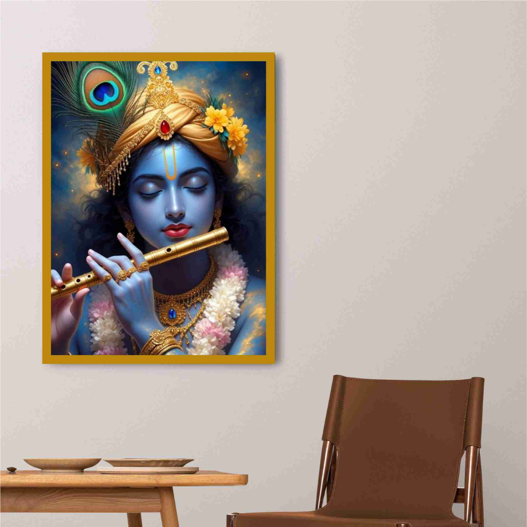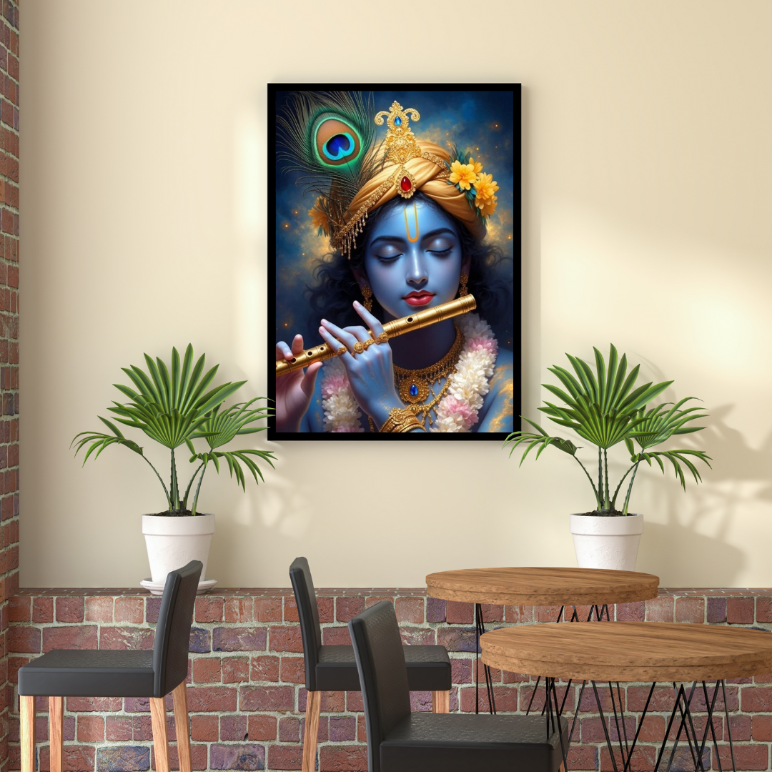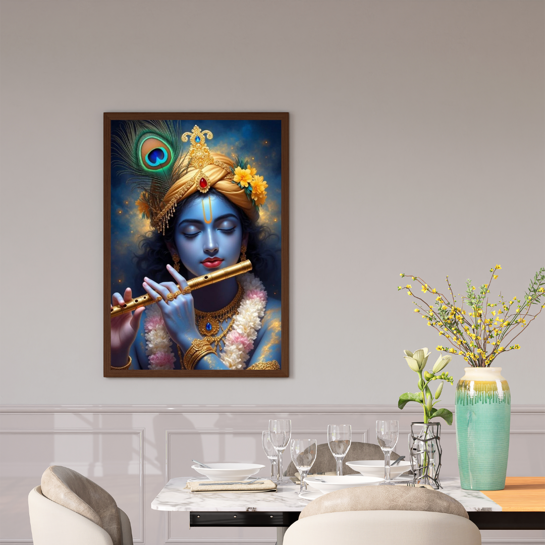 Serene Lord Krishna Flute Art Frame for Home Temple