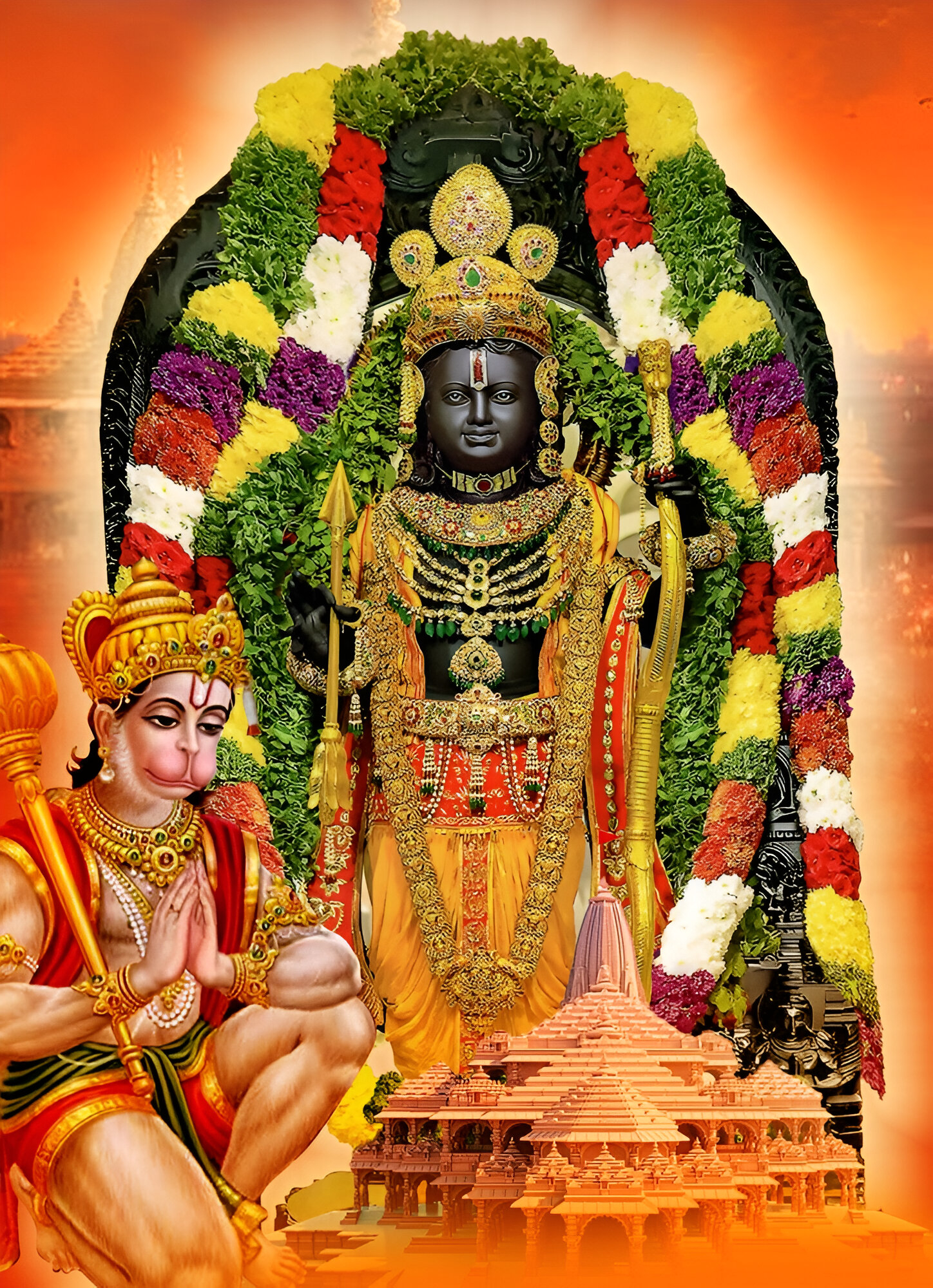 Ram Lalla Darshan with Hanuman Ji and Ayodhya Mandir.