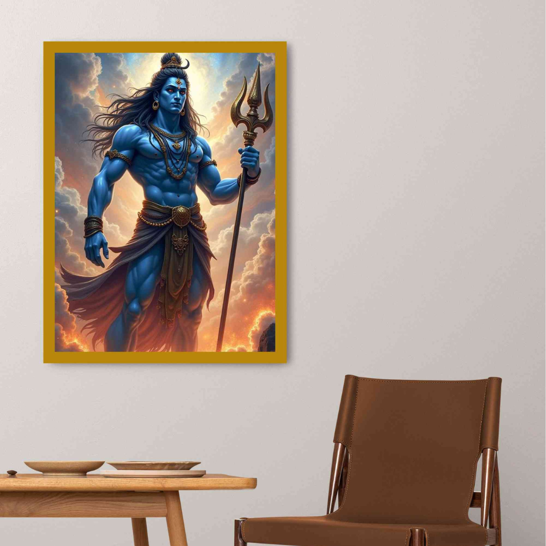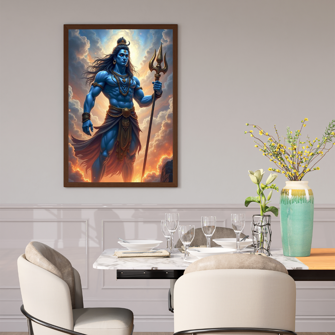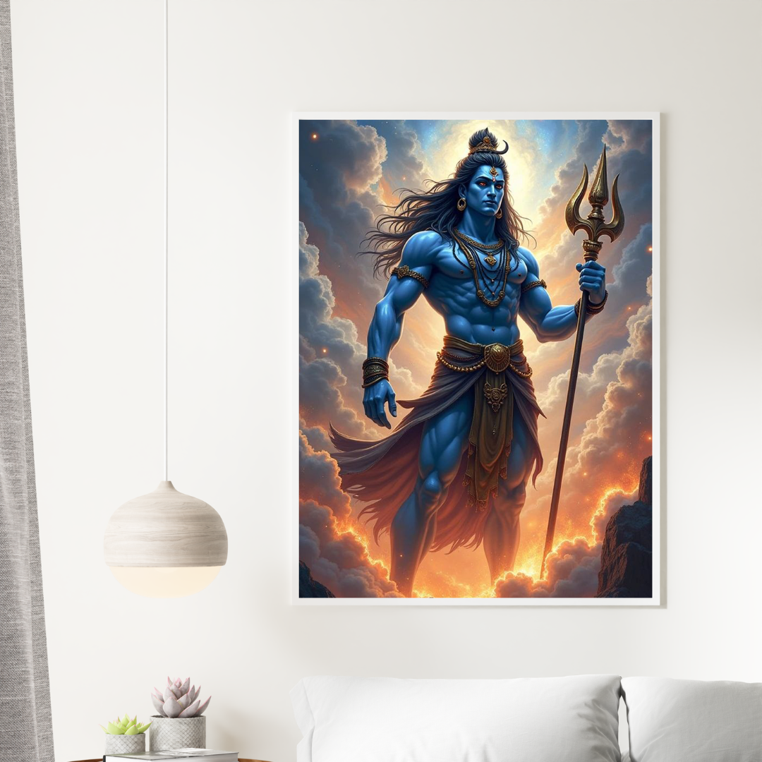 Lord Shiva Standing in Cosmic Aura Trishul Divine Poster