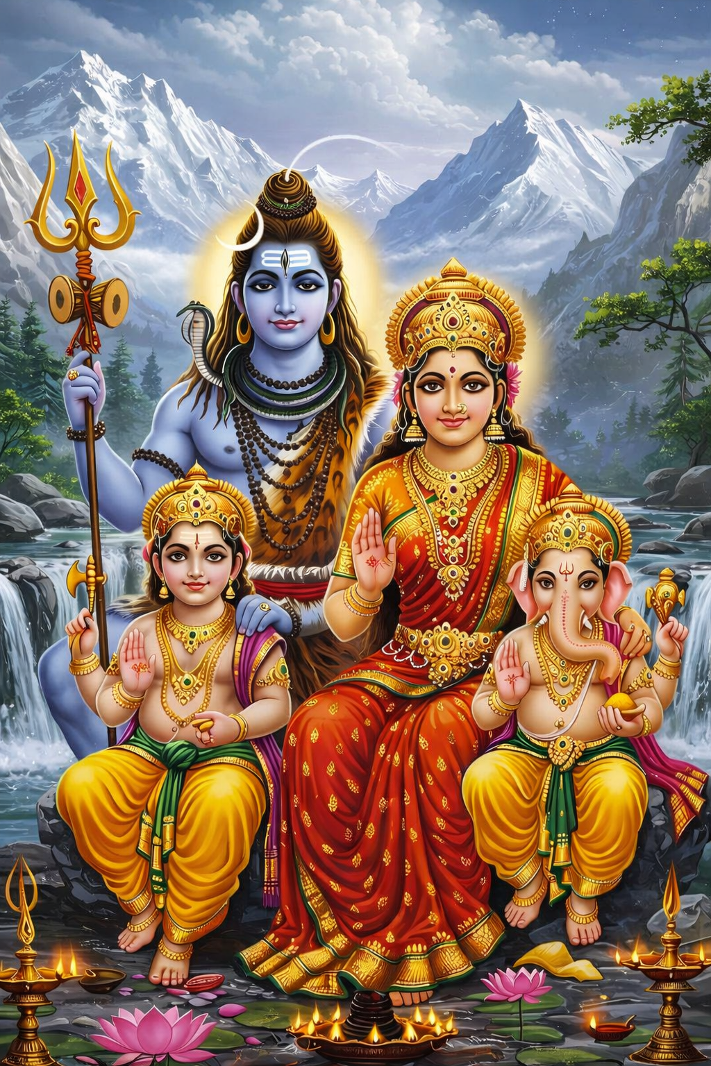 Shiv Parivar Divine Blessings Traditional Spiritual Artwork