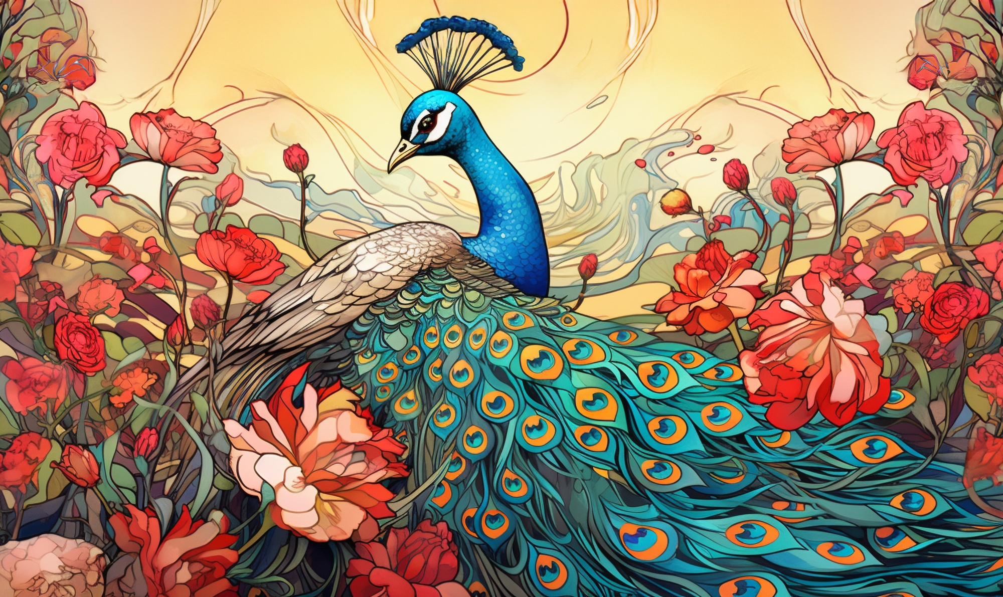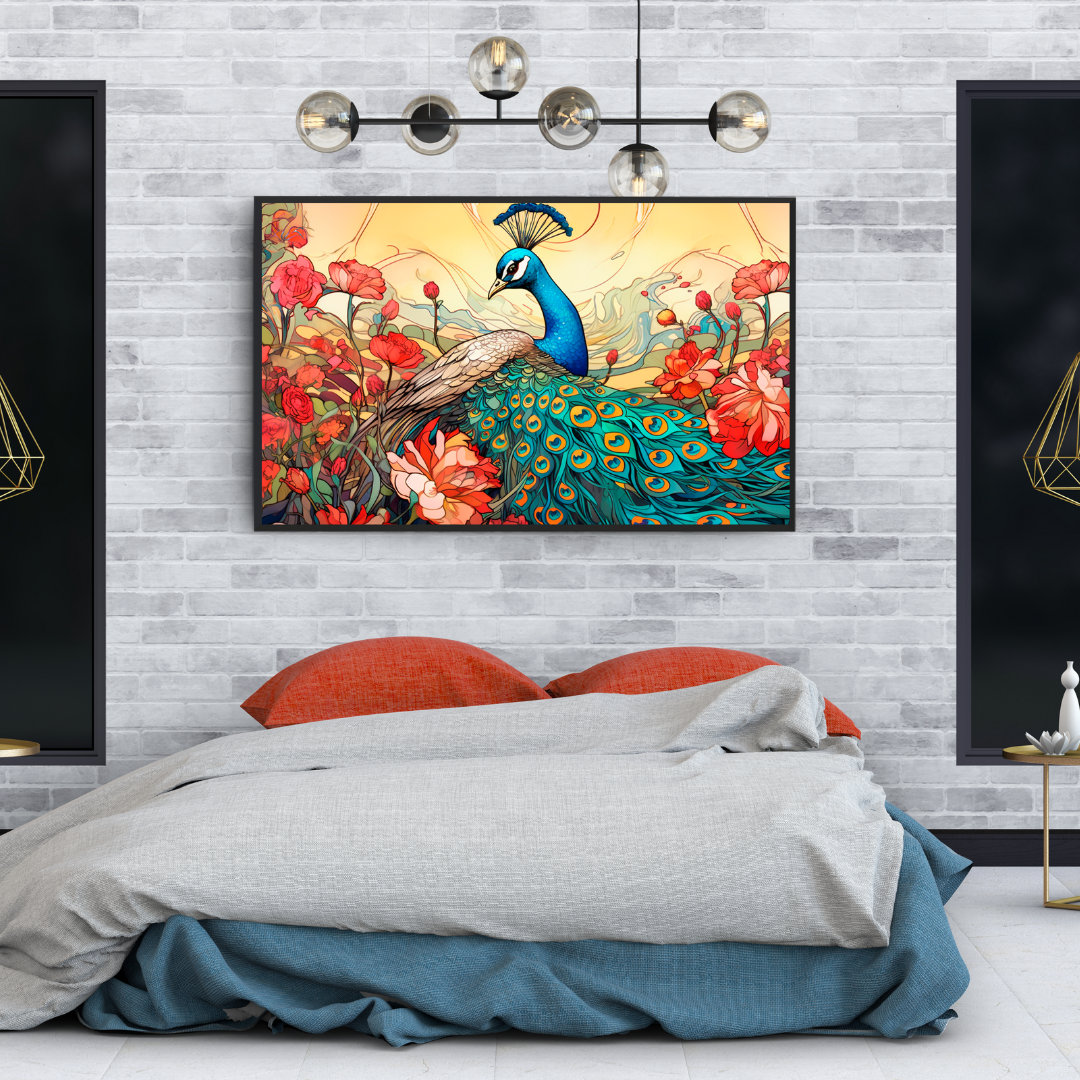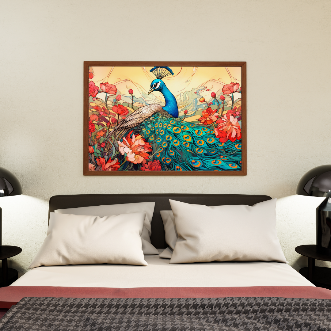 Beautiful Peacock Artwork with Colorful Flowers