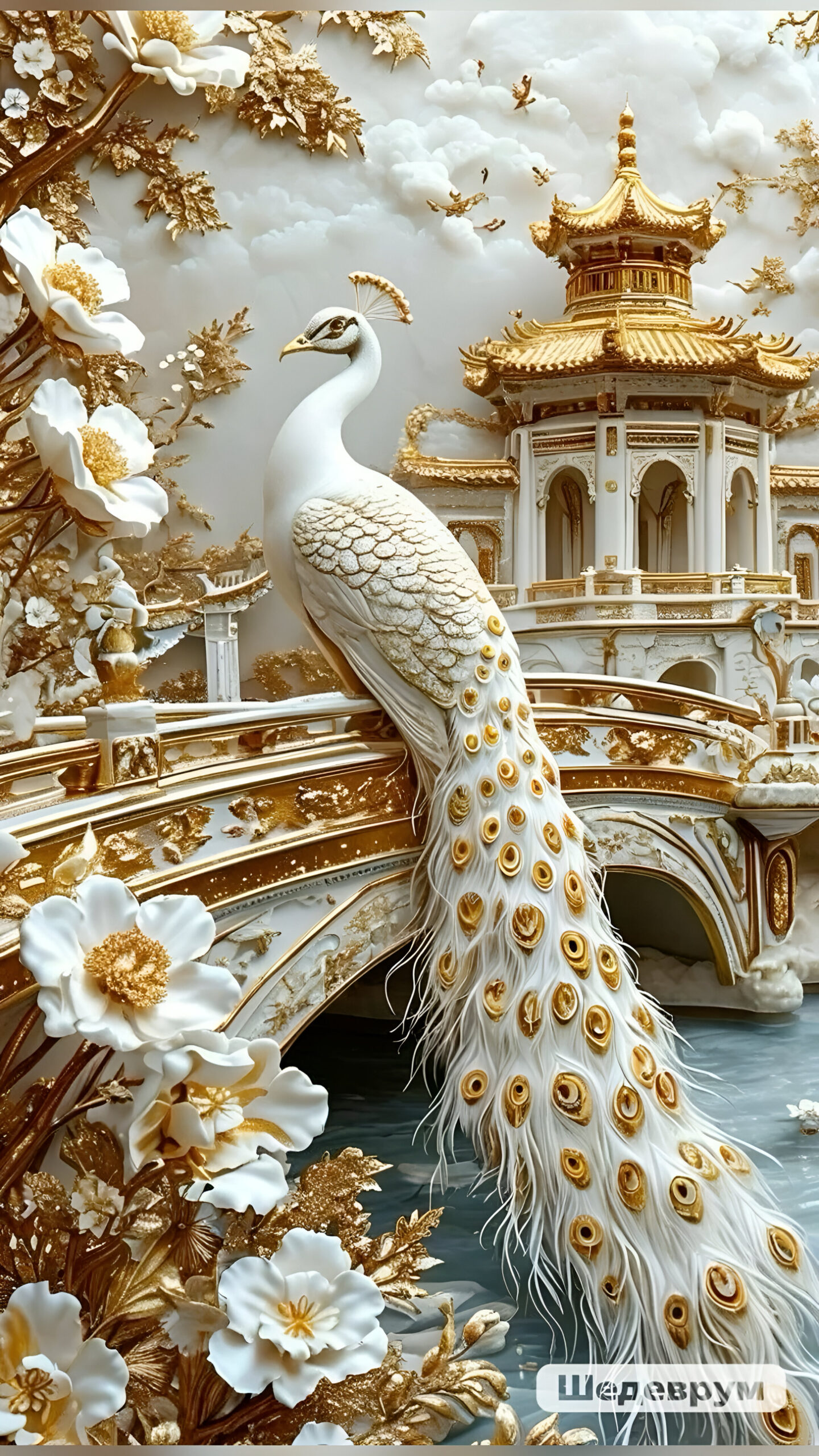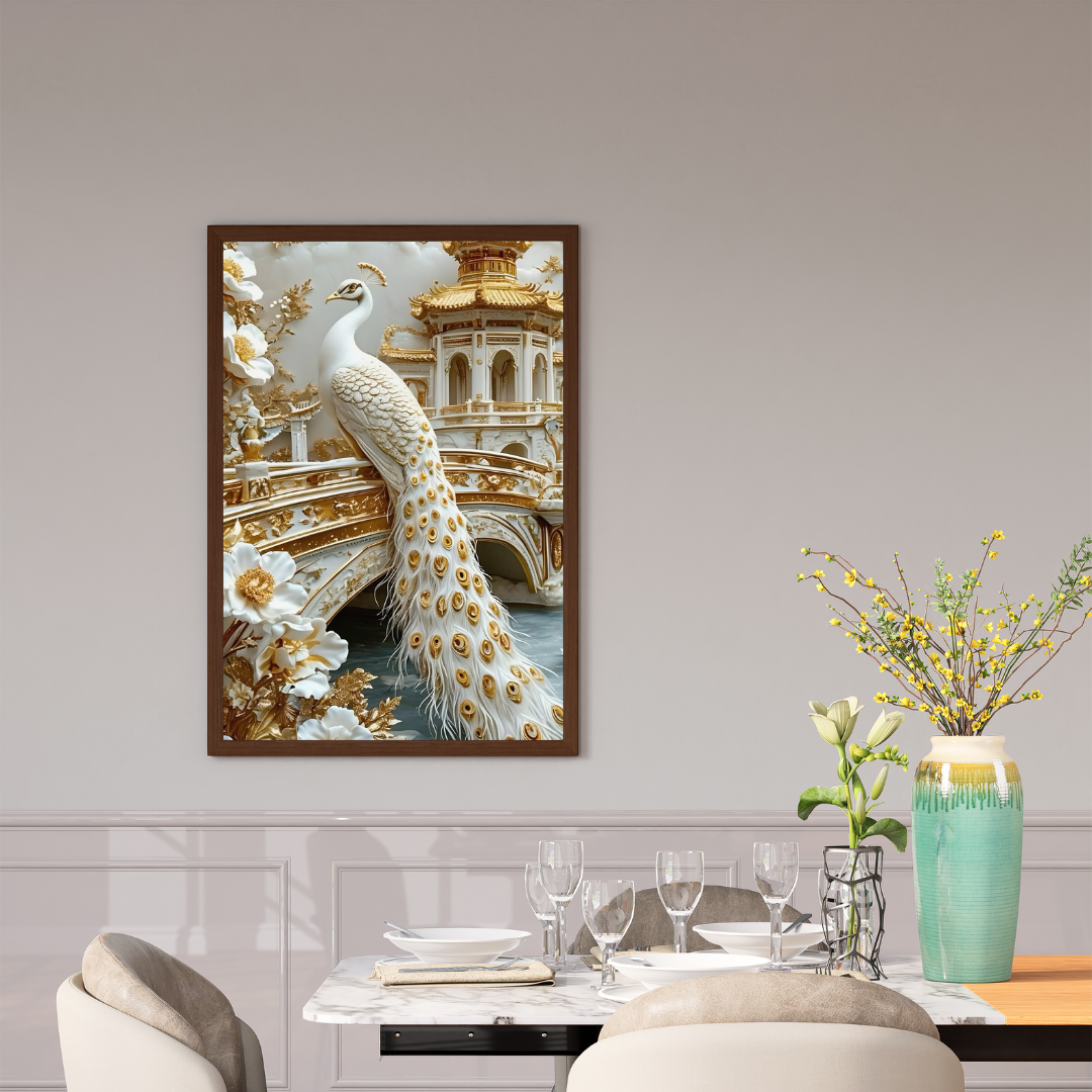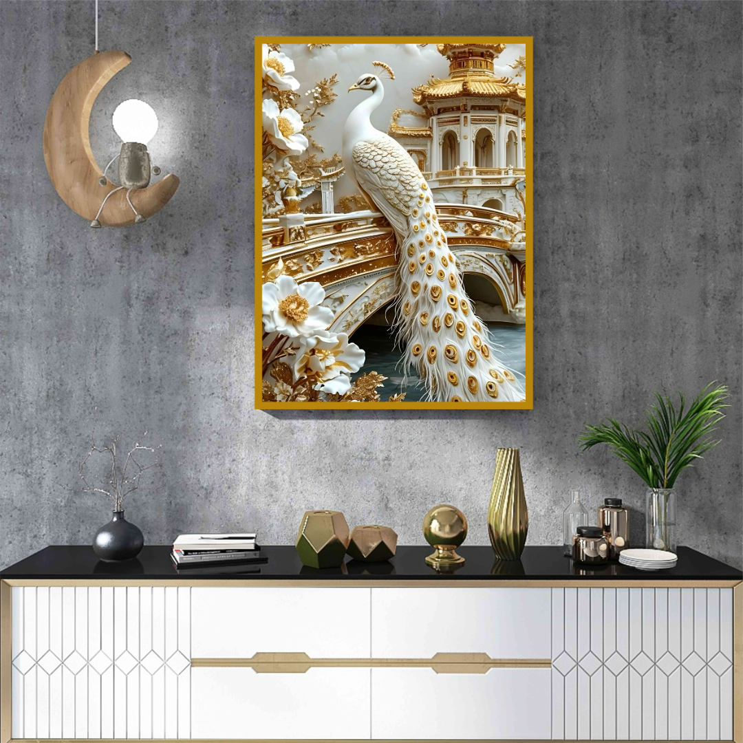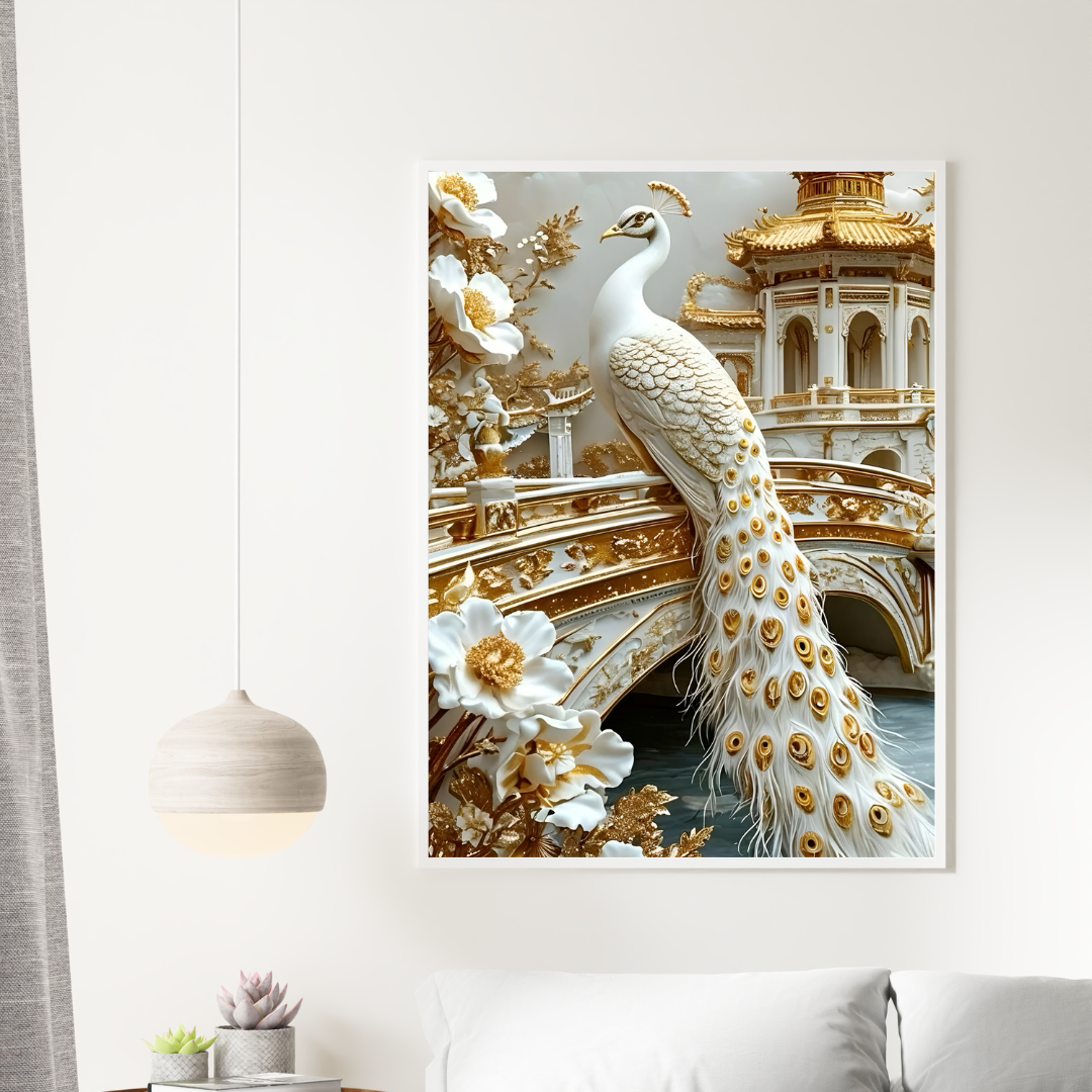 Luxury Peacock Artwork in Gold & White