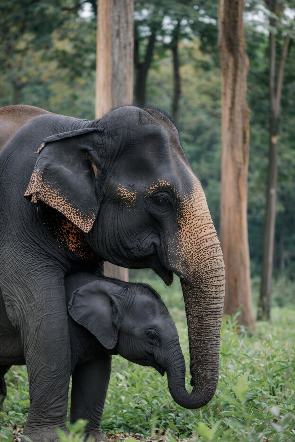 Elephant Mother and Baby in Forest – Wildlife Nature Image