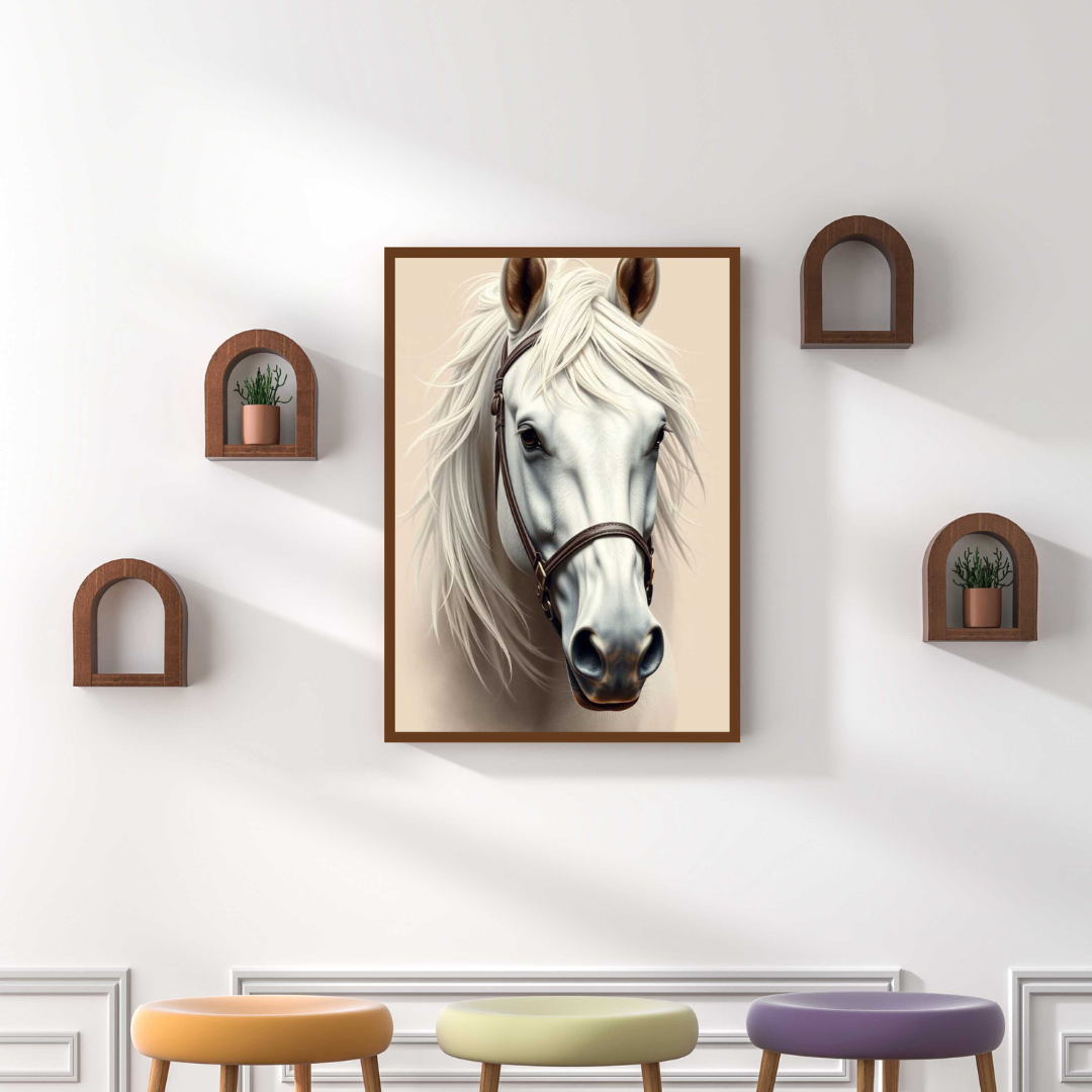 Graceful White Horse with Soft Neutral Background